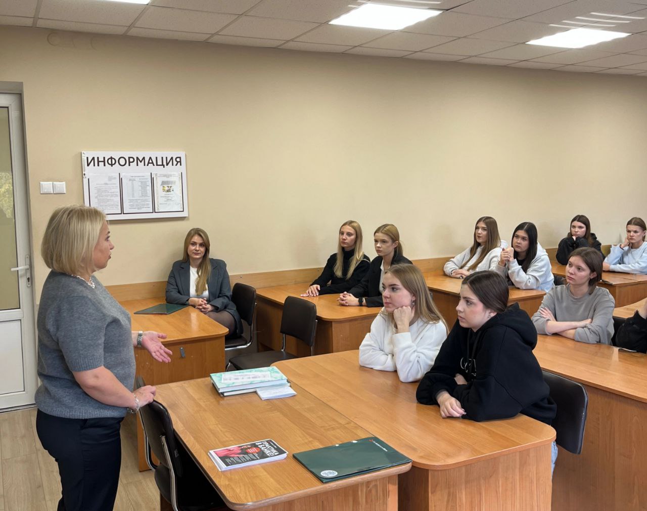 15 октября 2025 года, в рамках профориентации состоялась встреча учащихся учебной группы 2304 специальности «Планово-экономическая и аналитическая деятельность» с менеджером управления по подбору персонала и развитию карьеры Центра по работе с персоналом ОАО «Белагропромбанк» Муровейко А.П., главным специалистом отдела внутреннего маркетинга Управления маркетинга и общественных связей Артымоновой А.Д. и главным специалистом финансово-экономического отдела Региональной дирекции ОАО «Белагропромбанк» по г.Минску и Минской области Колесниковой А.С.