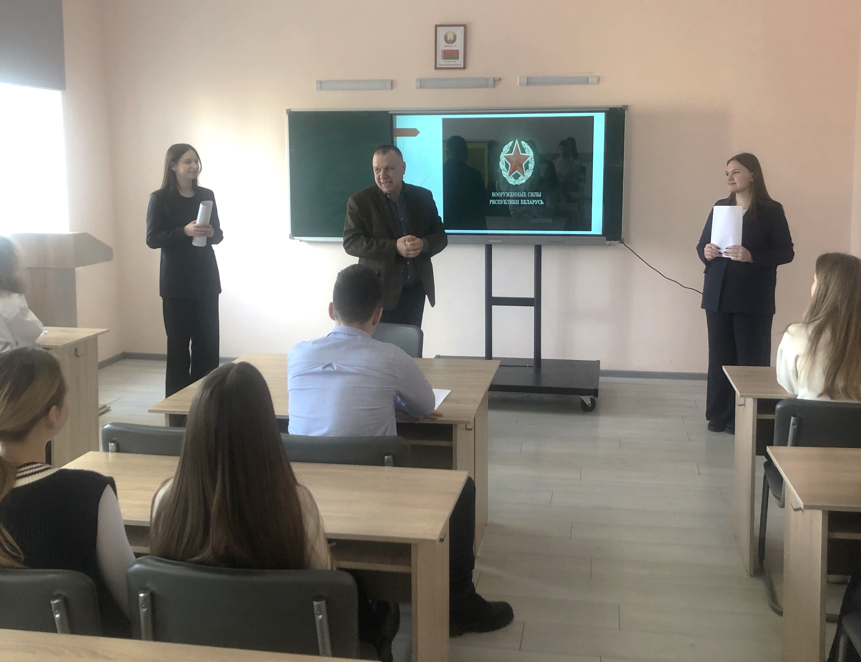 Учащиеся вспомнили историю праздника, приняли участие в диспуте «Служба в армии: за и против», познакомились с положениями национального законодательства о воинской обязанности и воинской службе, узнали об ответственности за уклонение от воинской обязанности.