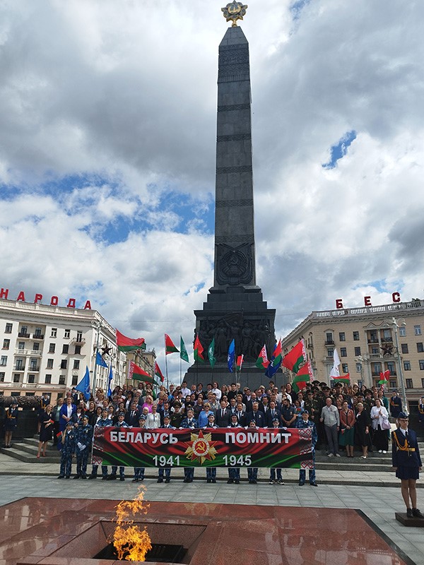 У монумента Победы 30 июня 2025 года еще одну страницу символического календаря памяти с событиями Великой Отечественной войны торжественно перелистнула делегация Советского района города Минска в составе представителей районной администрации, трудовых коллективов, общественных объединений, студентов и воспитанников военно-патриотических клубов. Сотрудники колледжа во главе с директором Бесько О.А. приняли участие в акции.