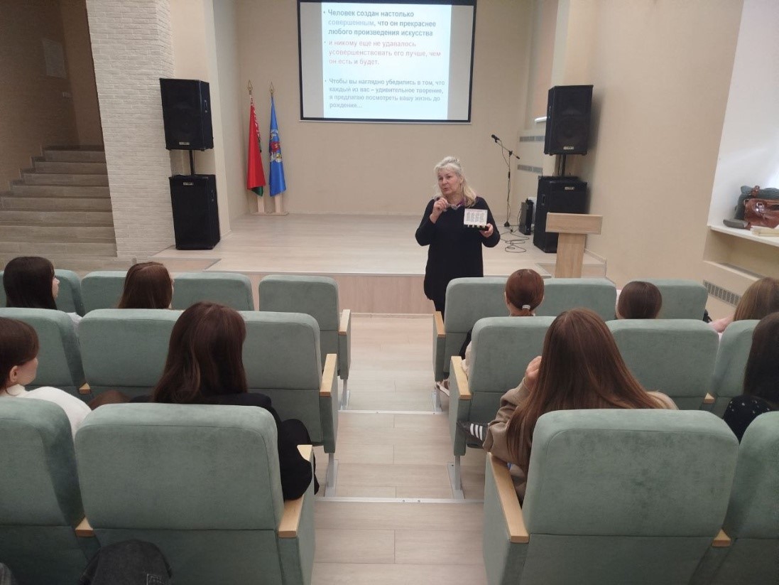 16 мая 2025 года в рамках реализации проекта «Мой стиль жизни сегодня, мое здоровье и успех завтра!» с учащимися 1 курса организована  встреча с психологом учреждения здравоохранения «34-я центральная района клиническая поликлиника Советского района г.Минска» Фирисюк Татьяной Николаевной по теме «Семейные ценности».