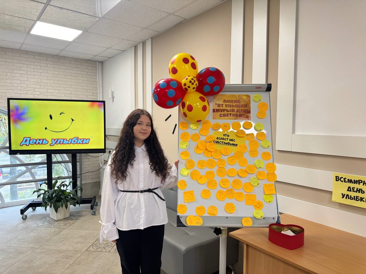 3 октября 2025 года с целью создания благоприятного эмоционального климата в колледже была организована интерактивная площадка «От улыбки хмурый день светлей!», где каждому участнику необходимо было письменно ответить на вопрос, что делает его счастливым. Итогом акции стал солнечно-позитивный и яркий стенд, наполненный позитивными жизни учащихся и педагогов.