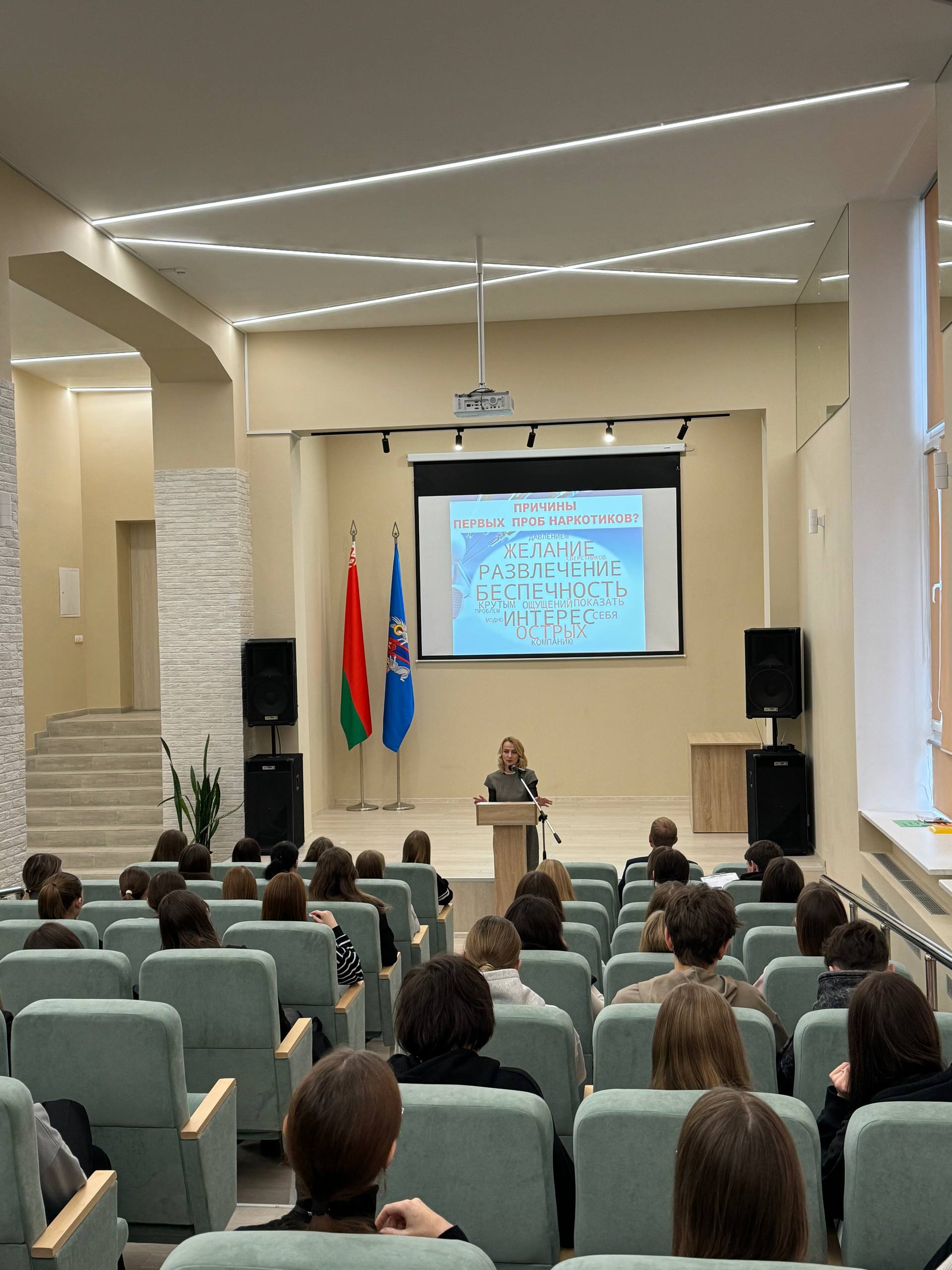Спикером на данном мероприятии выступил оперуполномоченный  отдела по наркоконтролю и противодействию торговле людьми УВД Советского района г.Минска капитан милиции Щурко Евгений Владиславович. Тема наркотиков на мероприятии рассматривалась с двух аспектов: правового и физиологического. В ходе выступления Юрий Владиславович развенчал мифы о высоких заработках наркокурьеров и напомнил о серьезной ответственности за распространение наркотических средств в виде больших сроков лишения свободы. Модератор мероприятия – педагог социальный Емельянова Татьяна Николаевна рассказала о последствиях приема наркотиков и о том, где можно получить медицинскую и психологическую консультационную помощь.