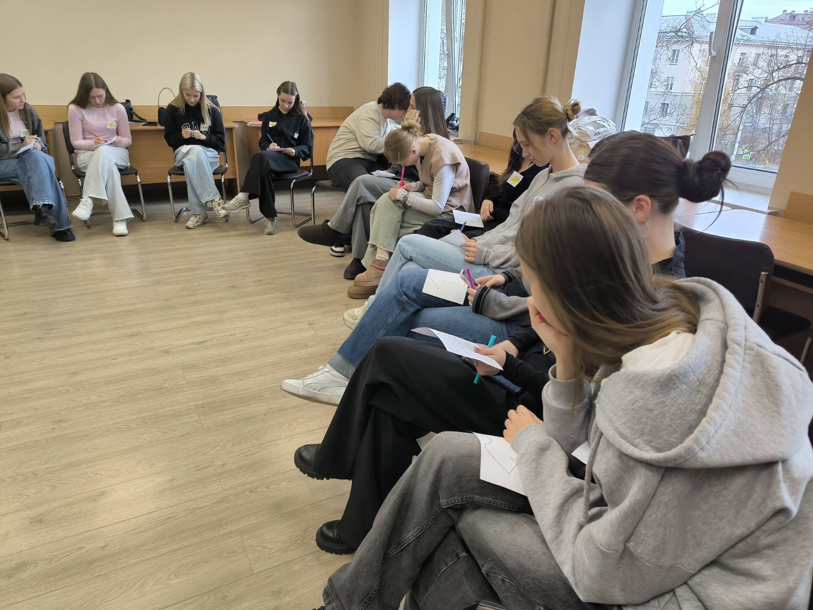 6 ноября 2025 года проведено занятие с элементами тренинга для учебной группы 2512 первого года обучения. На занятии учащиеся познакомились с понятием эмоционального интеллекта. Учились распознавать свои и чужие эмоции. Понимание друг друга залог формирования дружного коллектива.