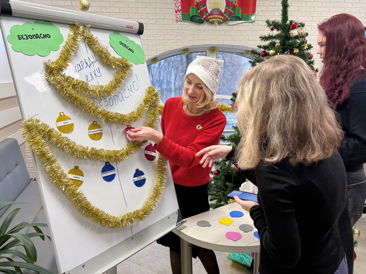 На перерывах проведена интерактивная площадка, при взаимодействии с представителями РОЧС Советского района г.Минска. На интерактивной площадке участники нарядили елку безопасными и опасными украшениями,  проверили знания по в он-лайн игре «Шаги спасения»,  получили новогодние пожелания от пожарного Дедушки Мороза.