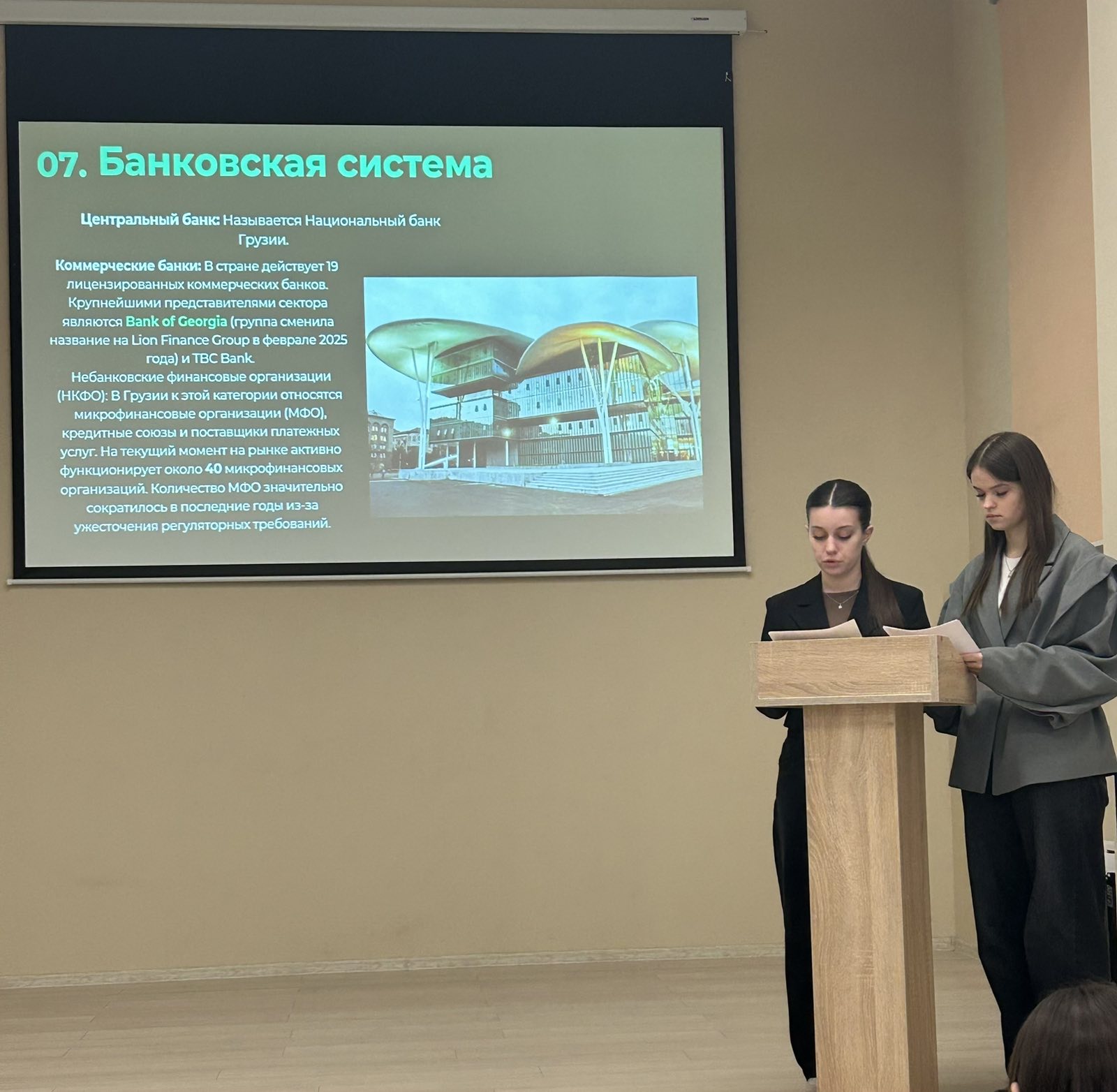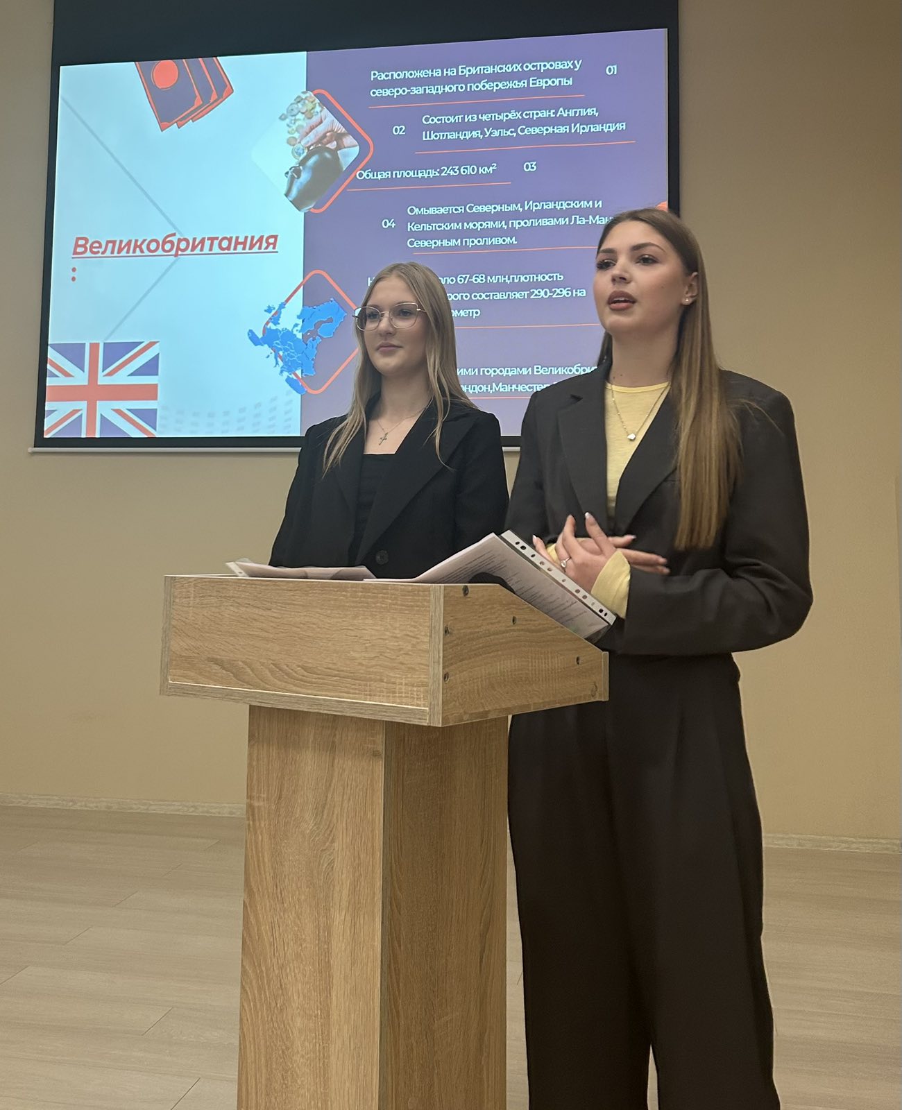 3 место заняли учащиеся группы 2507 Акулова Валерия, Муравицкая Анна с докладом о денежной системе Великобритании.
