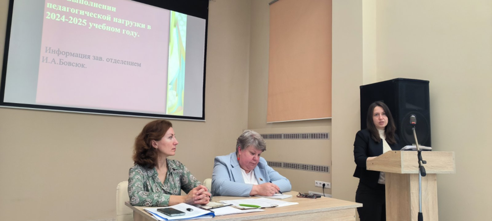 Заведующий отделением Бовсюк Ирина Александровна выступила по вопросу «О выполнении педагогической нагрузки в 2024-2025 учебном году».
