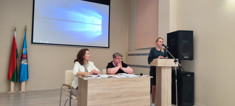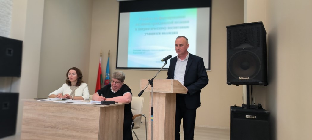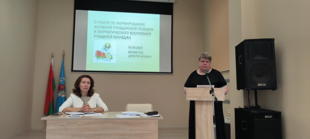По вопросу «О работе по формированию активной гражданской позиции и патриотическому воспитанию учащихся колледжа» выступили с докладом директор колледжа Оксана Анатольевна Бесько, начальник отдела по воспитательной работе с молодежью Александр Романович Жарковский, руководитель по военно-патриотическому воспитанию Владимир Томашевич Булгак, воспитатель Наталья Валерьевна Лагун.