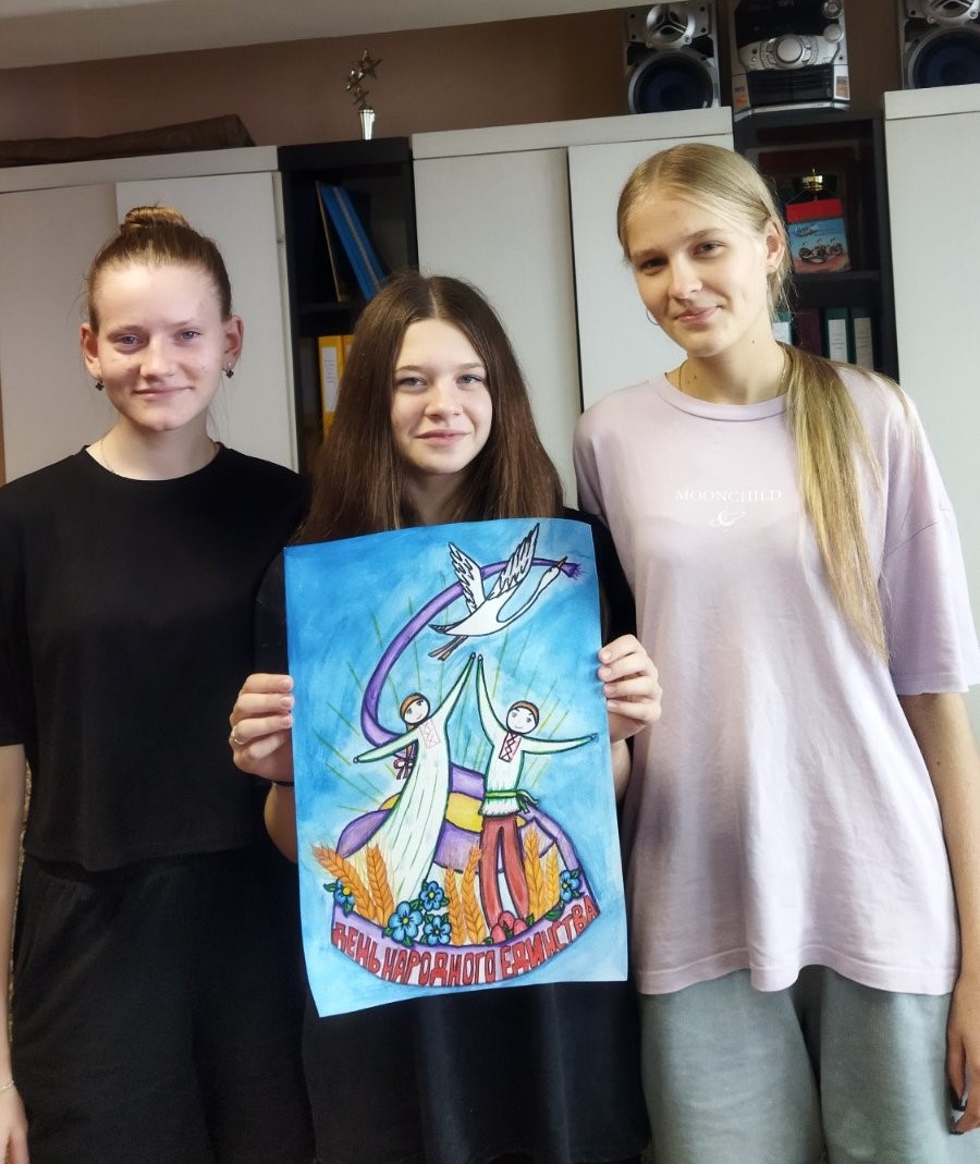 Учащиеся, проживающие в общежитии, Лубите Диана, Горчанина Юлия и Соловей Екатерина, учащиеся учебной группы 2502, нарисовали и поздравили всех с государственным праздником, который символизирует национальную, государственную и территориальную целостность Беларуси, единение белорусского народа.