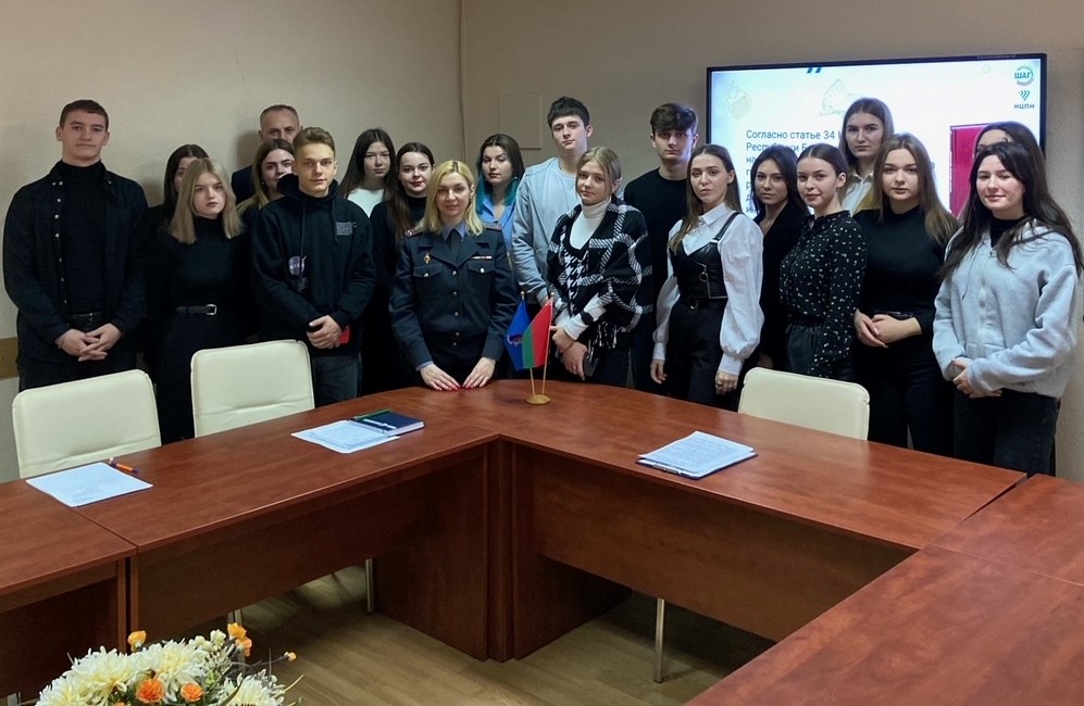 27 октября 2022 года в филиале БГЭУ «Минский финансово-экономический колледж» в рамках информационно-образовательного проекта «Школа Активного Гражданина» состоялась встреча с инспектором ИДН УВД Советского района г.Минска – Круталевич Татьяной Владимировной.