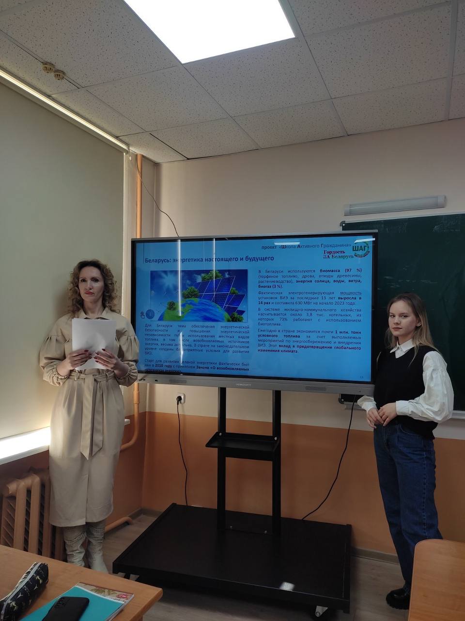 23 феврала 2023 года в учебных группах 1 и 2 курсов прошло мероприятие информационно-образовательного проекта «ШАГ» на тему «Гордость за Беларусь. Энергия для созидания, энергия для будущего» (обеспечение энергобезопасности страны).