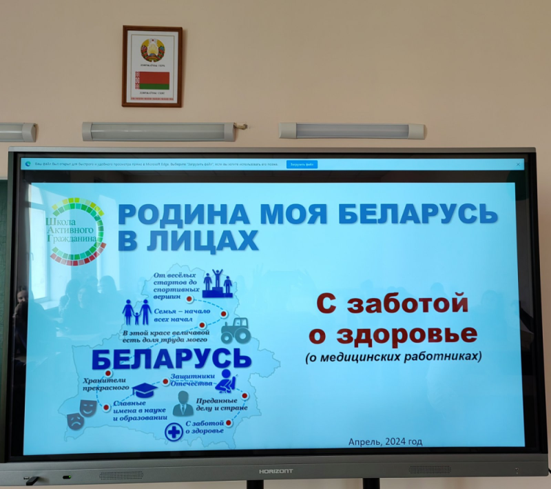 25 апреля 2024 года в учебных группах колледжа прошли занятия в рамках информационно-образовательного проекта «Школа Активного Гражданина» по теме «Родина моя Беларусь в лицах. С заботой о здоровье» (о медицинских работниках).