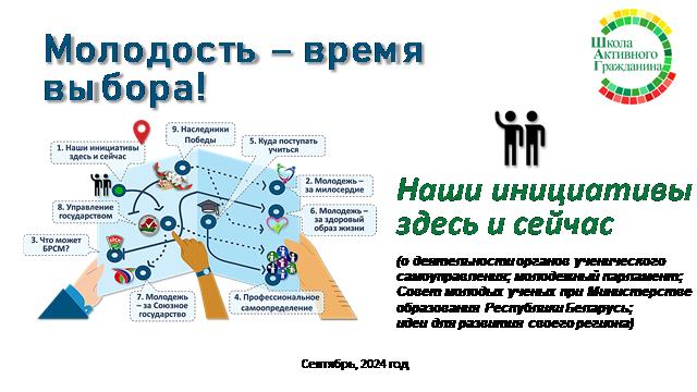 26 сентября 2024 года в учебных группах 1 и 2 курсов состоялось занятие в рамках Школы Активного Гражданина на тему «Молодость – время выбора. Наши инициативы здесь и сейчас».