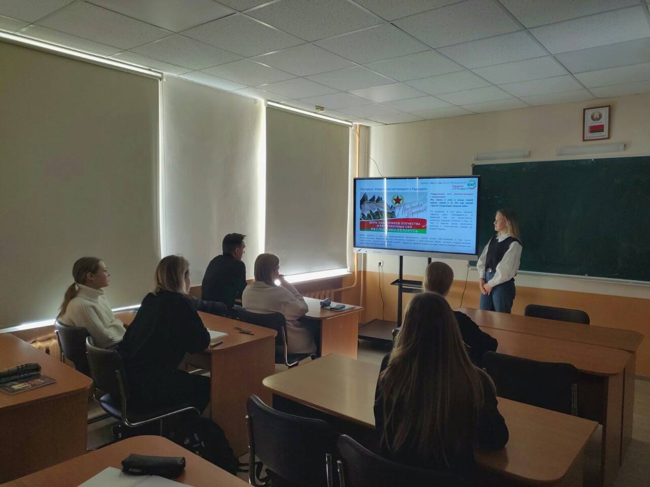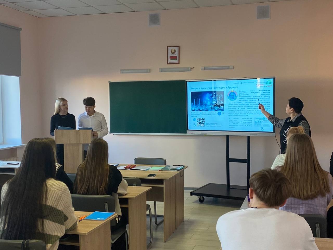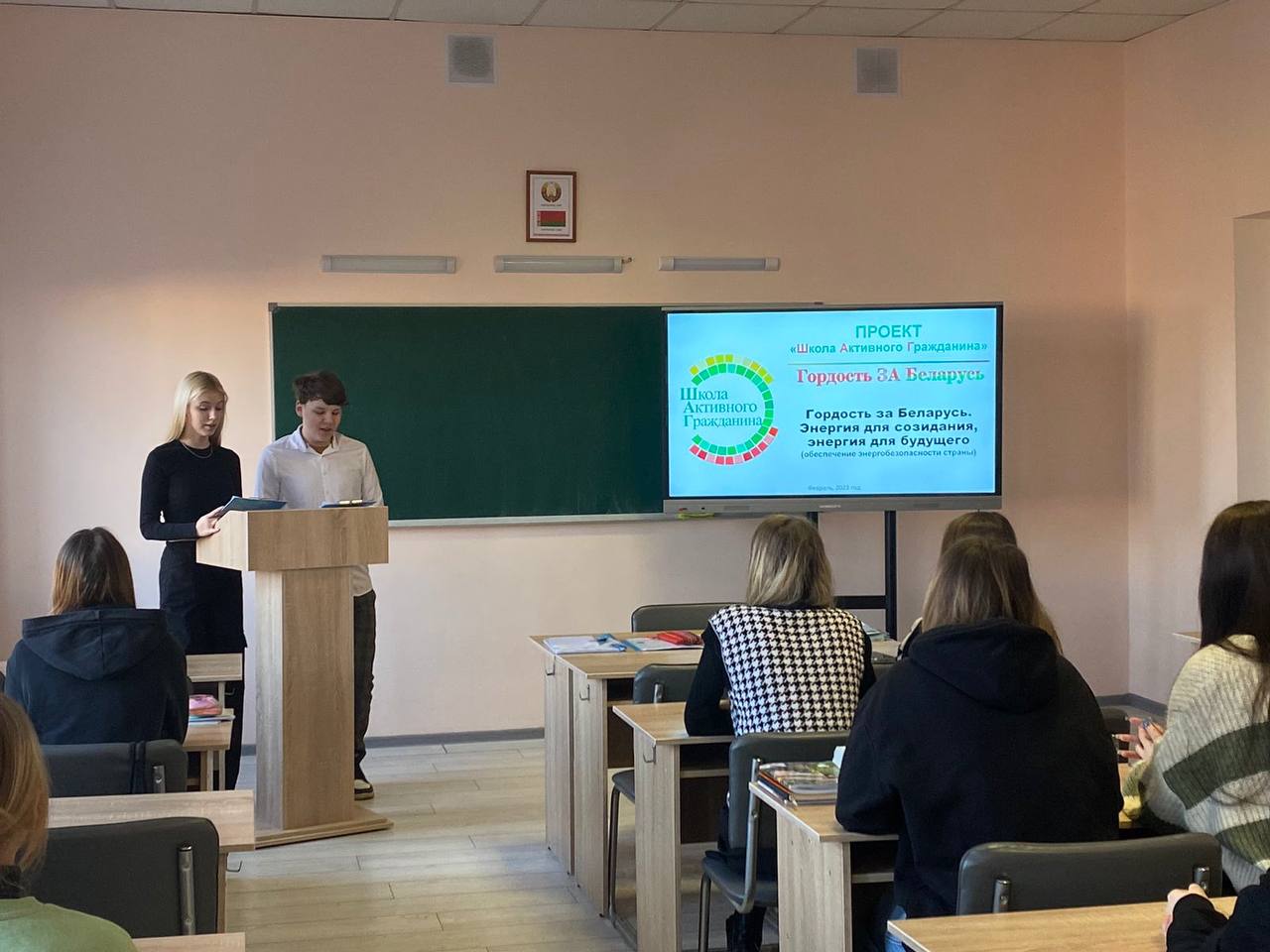 23 феврала 2023 года в учебных группах 1 и 2 курсов прошло мероприятие информационно-образовательного проекта «ШАГ» на тему «Гордость за Беларусь. Энергия для созидания, энергия для будущего» (обеспечение энергобезопасности страны).