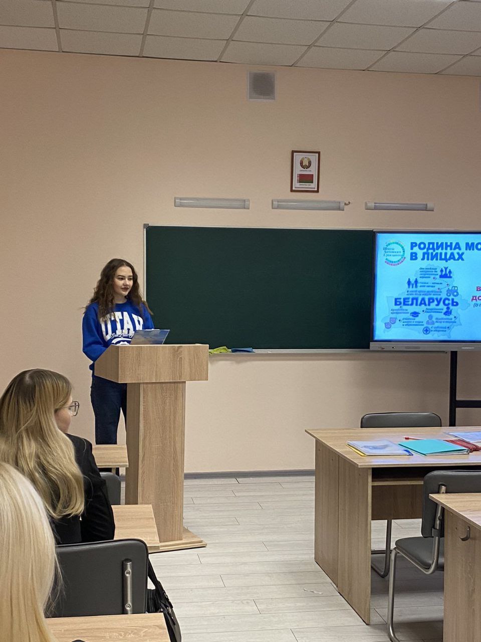 23 ноября 2023 года в рамках информационно-образовательного проекта «Школа Активного Гражданина» в колледже прошло мероприятие по теме: «Родина моя Беларусь в лицах. В этой красе величавой есть доля труда моего» (о тружениках промышленности).