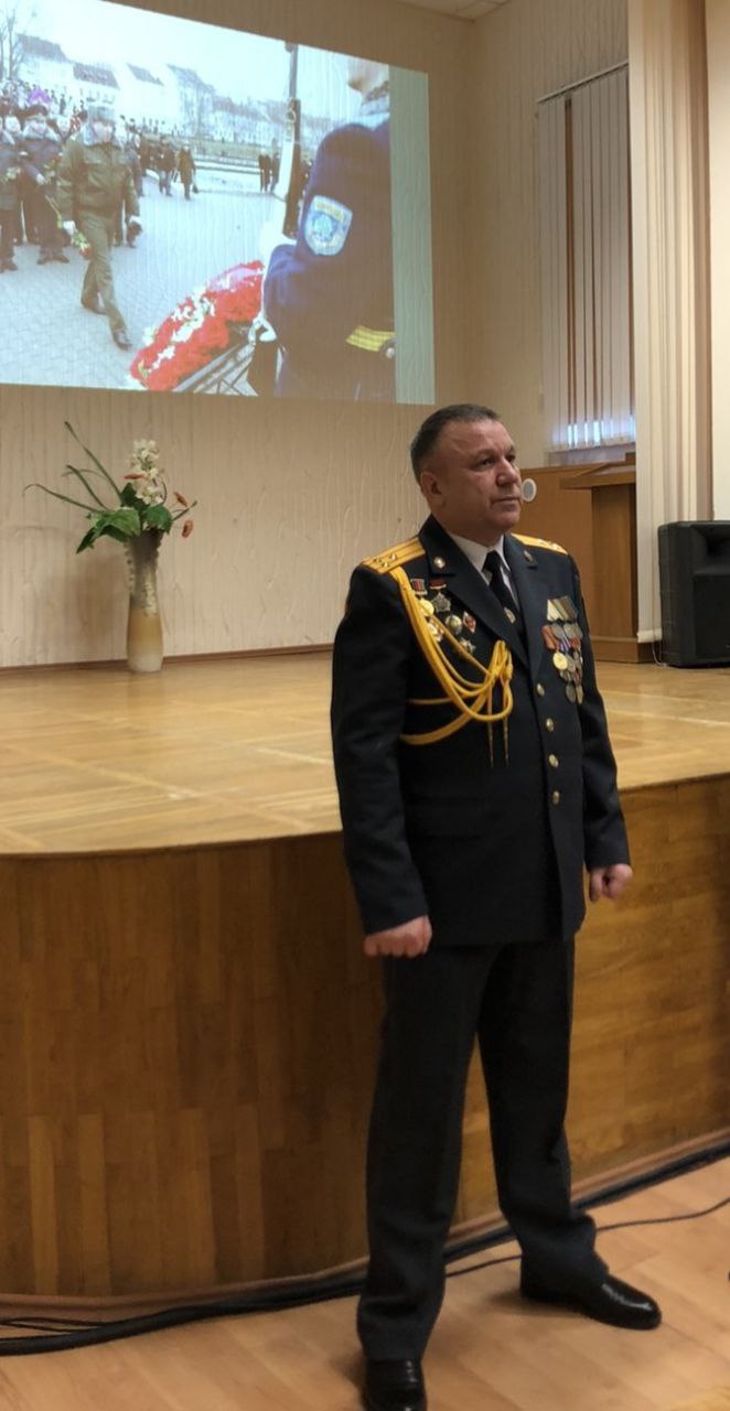 В актовом зале колледжа учащиеся первого курса встретились с руководителем по военно-патриотическому воспитанию колледжа, полковником милиции в запасе, воином-интернационалистом, участником боевых действий в Афганистане - Булгаком Владимиром Томашевичем.