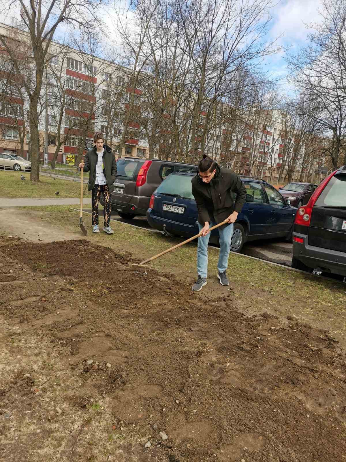 Учащиеся, проживающие в общежитии,  и сотрудники общежития привели в порядок прилегающую к общежитию  территорию.