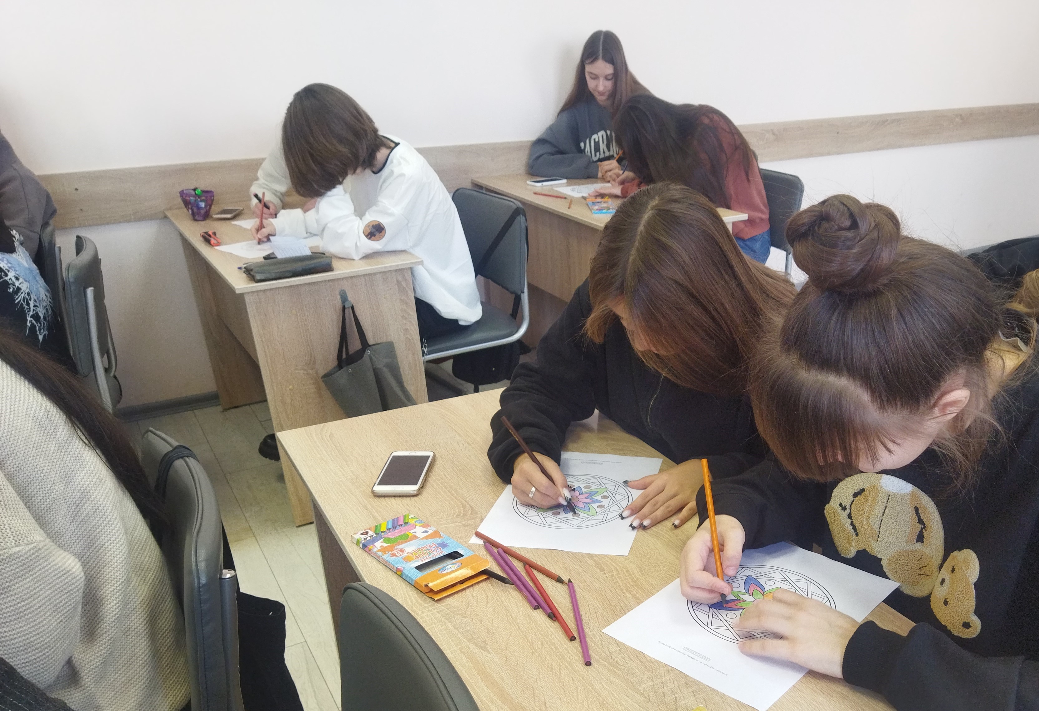 В ходе занятия участники познакомились со способами снижения напряжения в стрессовых ситуациях, возможностями преодоления негативных последствий, техниками медитации, глубокого дыхания, создания мандал.