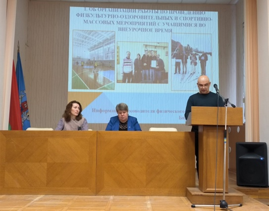 Руководитель физического воспитания Бирюков Виталий Анатольевич информировал присутствующих об организации работы по проведению физкультурно-оздоровительных и спортивно-массовых мероприятий с учащимися во внеурочное время.