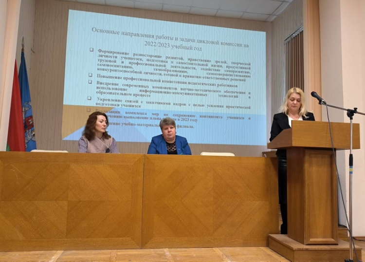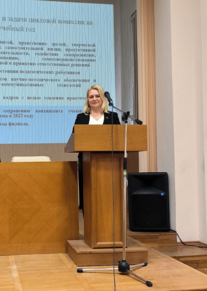 Председатель цикловой комиссии по специальностям «Маркетинг» и «Экономика и организация производства» Кисель Елена Георгиевна выступила по вопросу «О состоянии учебно-методической, внеаудиторной, воспитательной, кадровой работы в цикловой комиссии по специальностям «Маркетинг» и «Экономика и организация производства»».