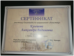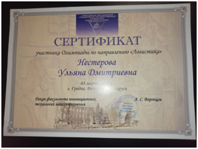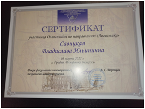 Учащиеся филиала специальности «Маркетинг» учебной группы 2012 Нестерова Ульяна, Кулешова Александра и Савицкая Владислава под руководством преподавателя Стасевич С.С. приняли участие в профильной олимпиаде по направлению «Логистика», проводимой факультетом инновационных технологий машиностроения учреждения образования «Гродненский государственный университет имени Янки Купалы».