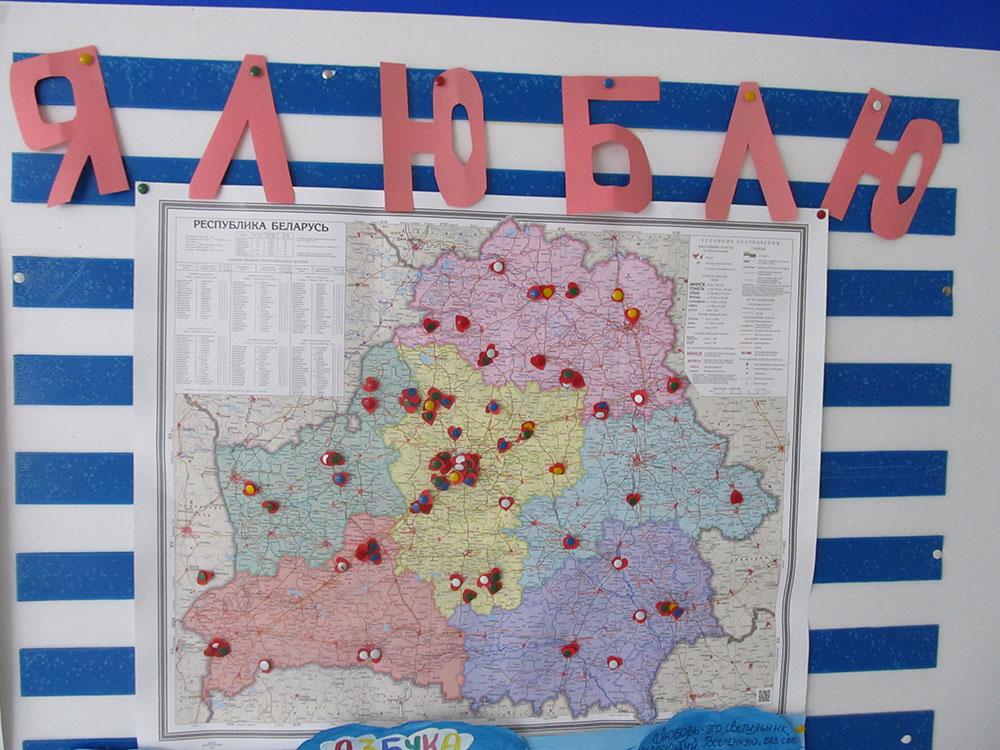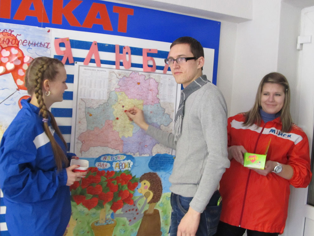 В переходе между учебными корпусами была вывешена карта Беларуси, на которую все желающие могли прикрепить сердечки и таким образом отметить любимые места нашей Родины. Советский районный комитет ОО «Белорусский Республиканский Союз Молодёжи» выступил организатором акции, оказал спонсорскую помощь и предоставил небольшие памятные подарки.