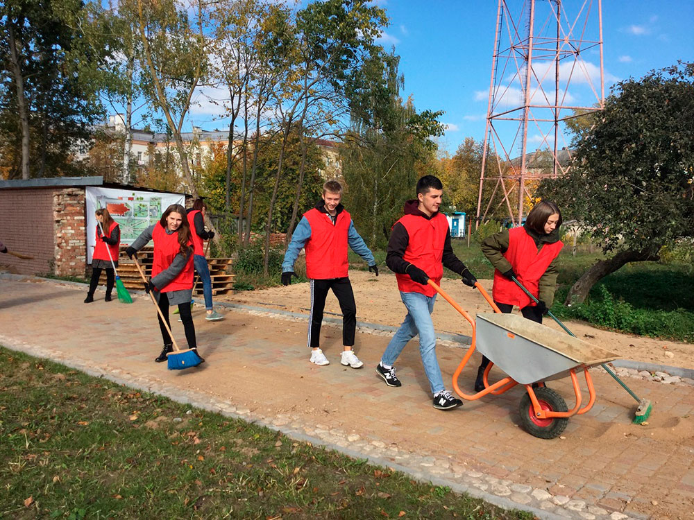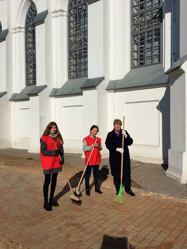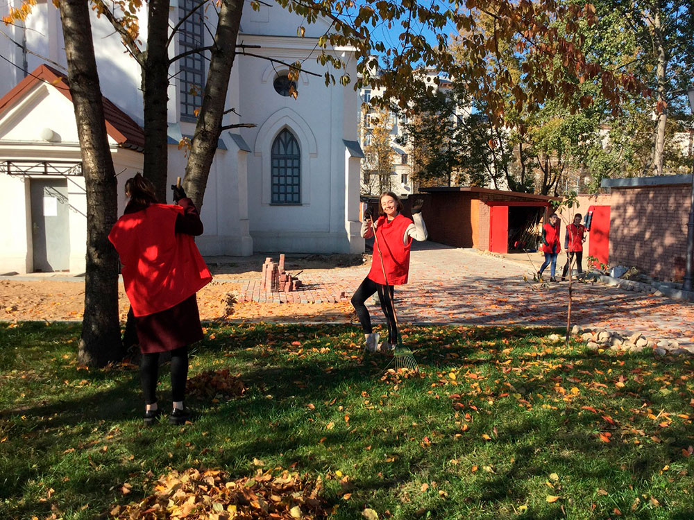 Активисты ПО ОО «БРСМ» филиала провели благотворительную акцию «Восстановление святынь Беларуси», помогли в благоустройстве территории Костела Святой Троицы, расположенного по адресу: проспект Независимости, 44 А.
