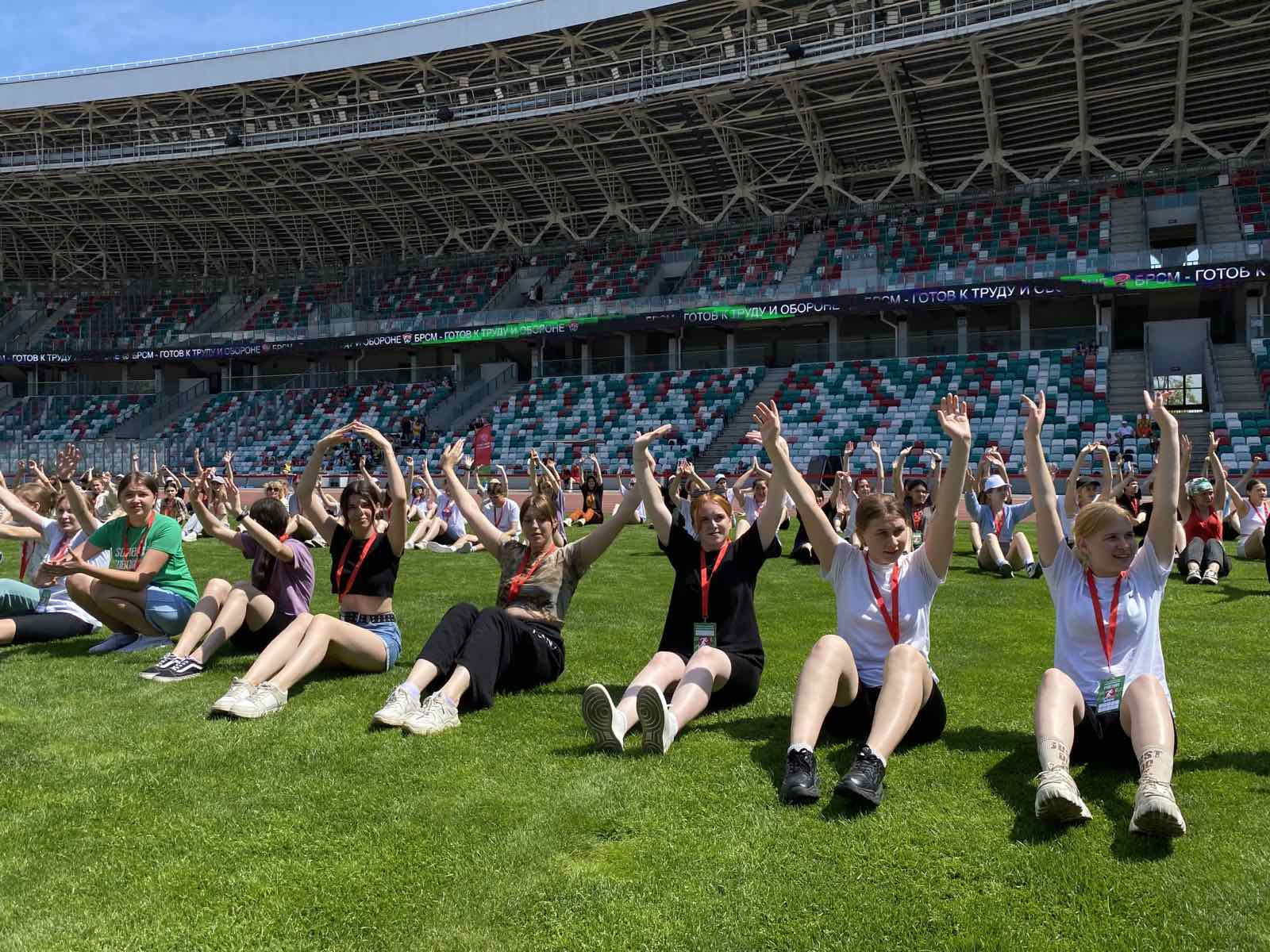 Первая «Народная зарядка» в Минске прошла на территории многофункциональной арены мирового уровня — Национальном олимпийском стадионе «Динамо», реконструкция которого была объявлена Мингорисполкомом Минской городской молодежной стройкой.