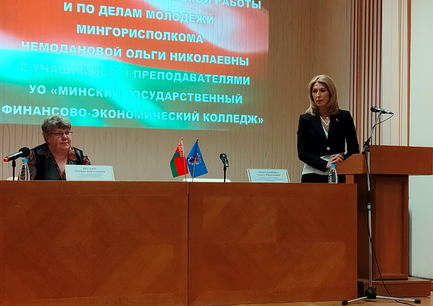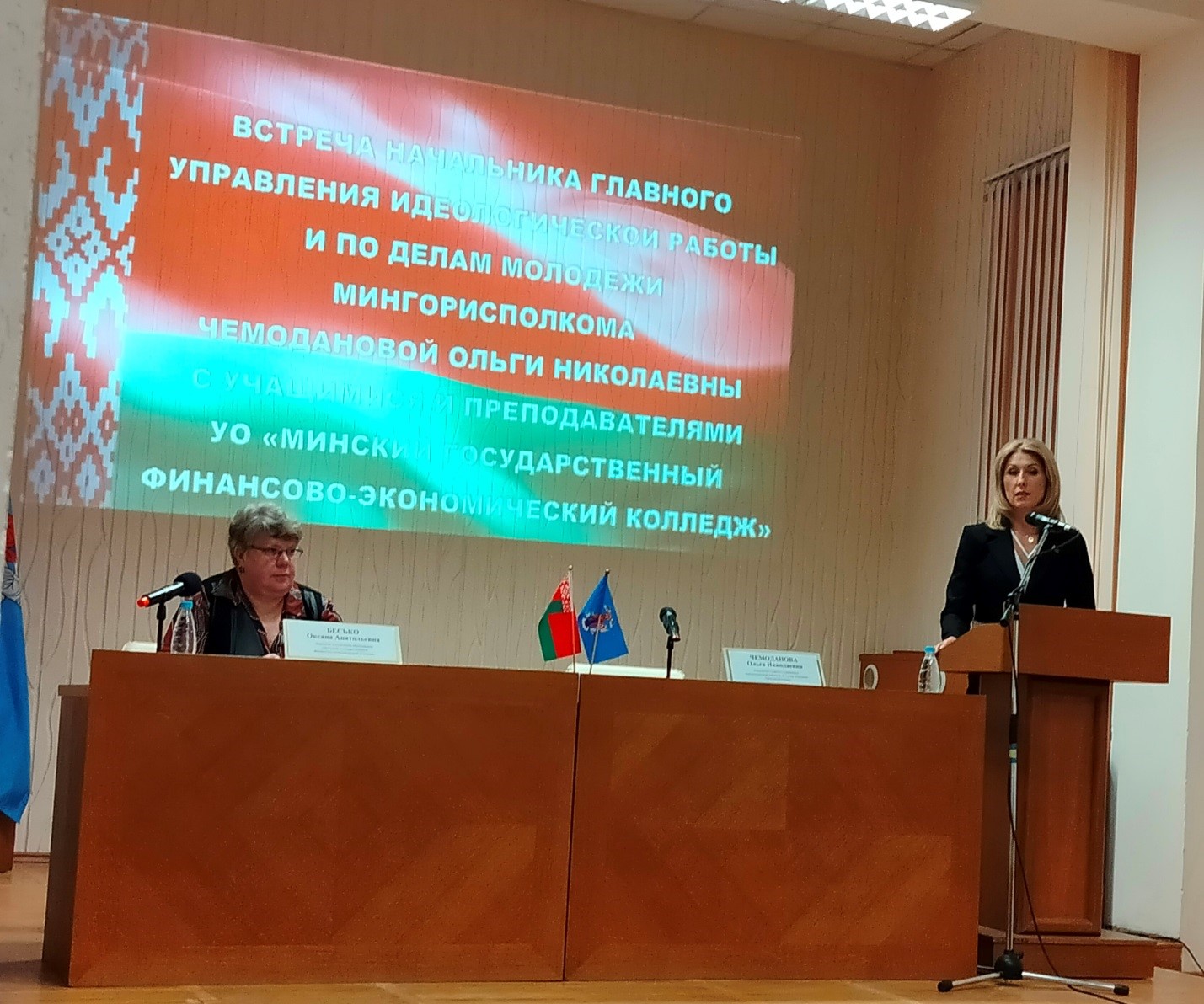 17 ноября 2023 года состоялась встреча начальника главного управления идеологической работы и по делам молодежи Мингорисполкома Ольги Чемодановой с учащимися и сотрудниками учреждения образования «Минский государственный финансово-экономический колледж». Тема встречи: «Экономическая безопасность — ключевое условие устойчивого развития белорусского государства».