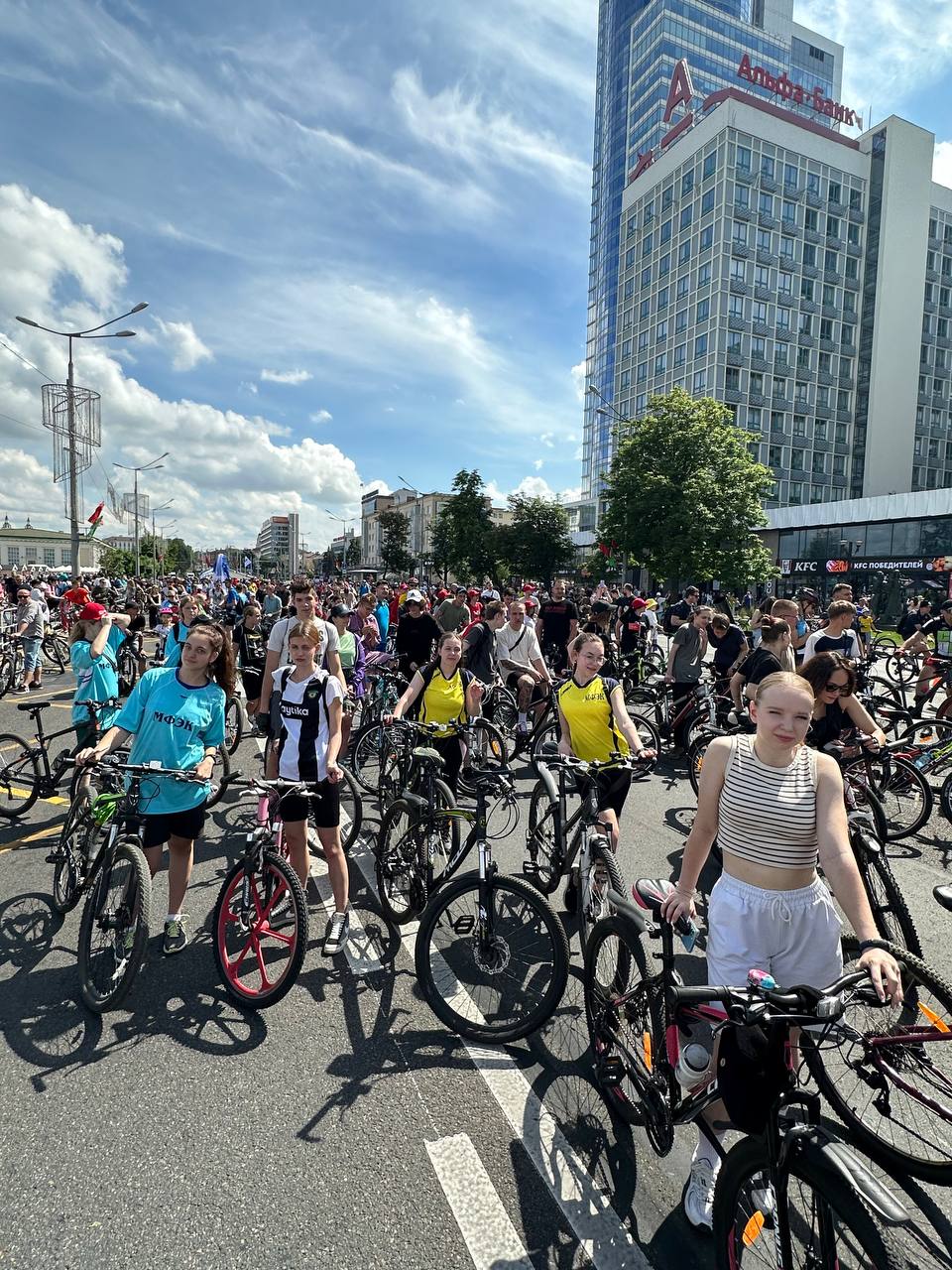 1 июня 2024 г. учащиеся нашего колледжа приняли участие в велопараде в рамках детско-юношеских соревнований по велосипедному спорту «Першы ровар», приуроченных ко Дню защиты детей.