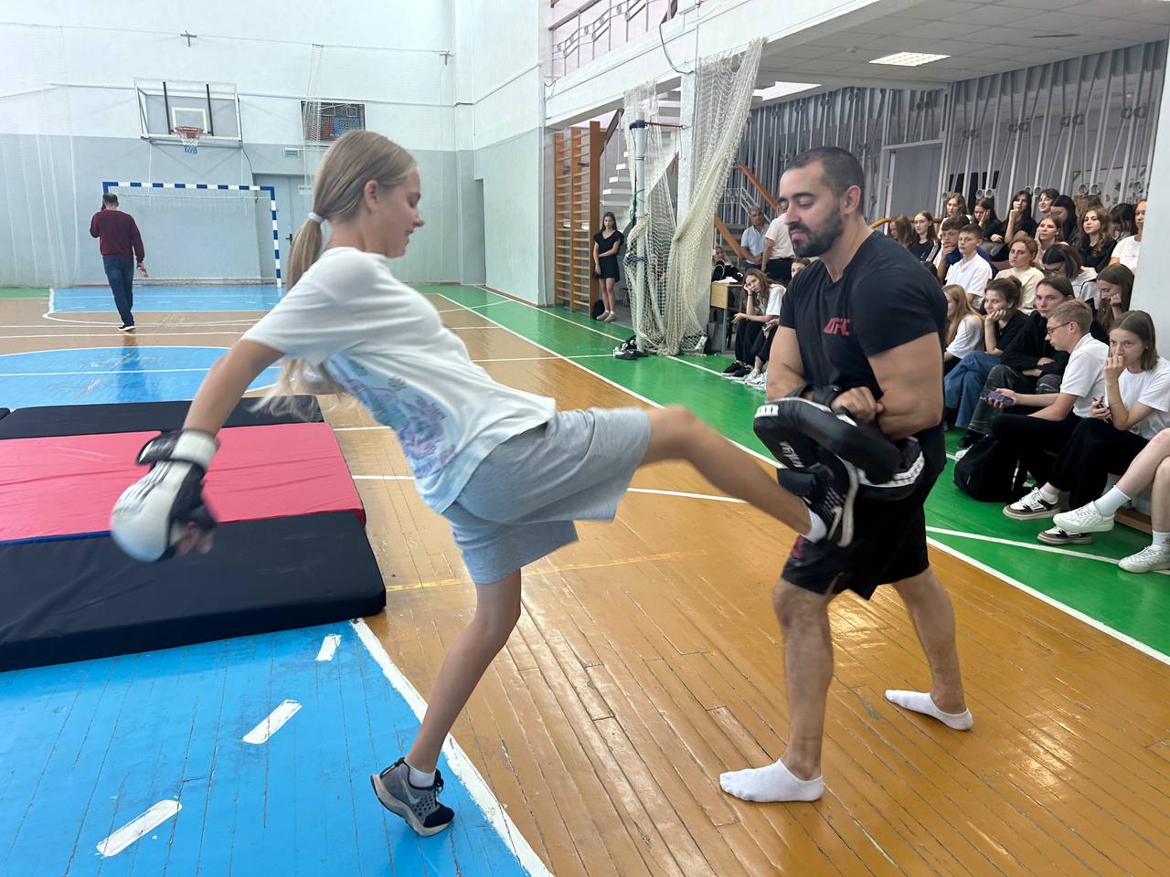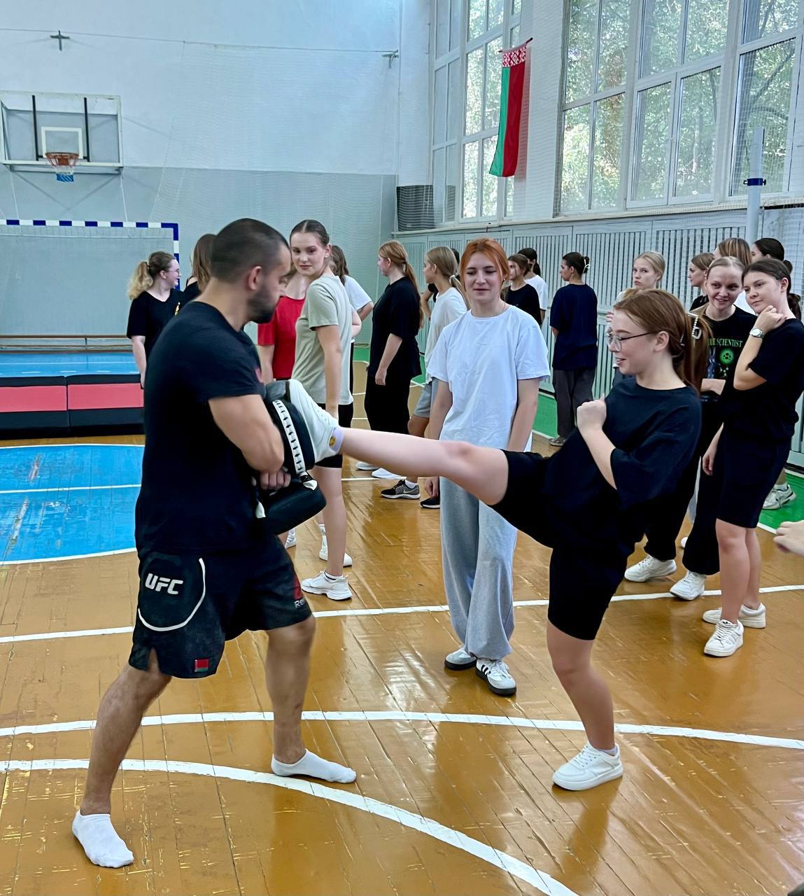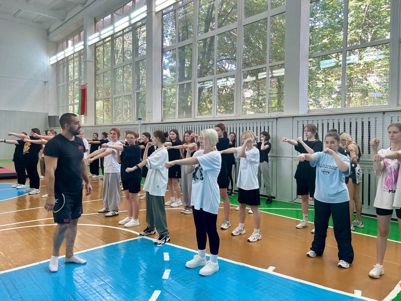 4 сентября 2024 года в спортивном зале общежития колледжа в рамках республиканского комплексного спортивно-массового мероприятия «Неделя спорта и здоровья» педагогом дополнительного образования ГУО «ФСЦДиМ Советского района г. Минска» Шутовым Г.А. проведен мастер-класс по смешанным единоборствам. В мероприятии приняло более 80 учащихся первого и второго курса колледжа.