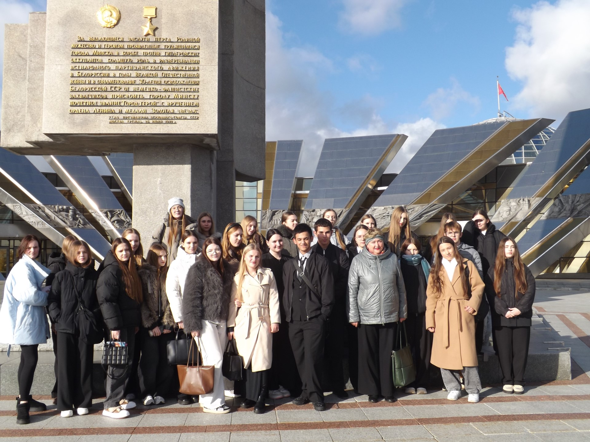 13 ноября 2025 года учащиеся учреждения образования «Минский государственный финансово-экономический колледж» посетили Музей Славы Могилевщины. Учащиеся познакомились с экспозициями музея, узнали о героических подвигах советских солдат в годы Великой Отечественной войны, увидели подлинные документы и артефакты военных лет. Особое впечатление на учащихся произвели нейросетевые технологии, с помощью которых воссозданы реалистические образы людей прошлых лет, коллекция военной техники и оружия.