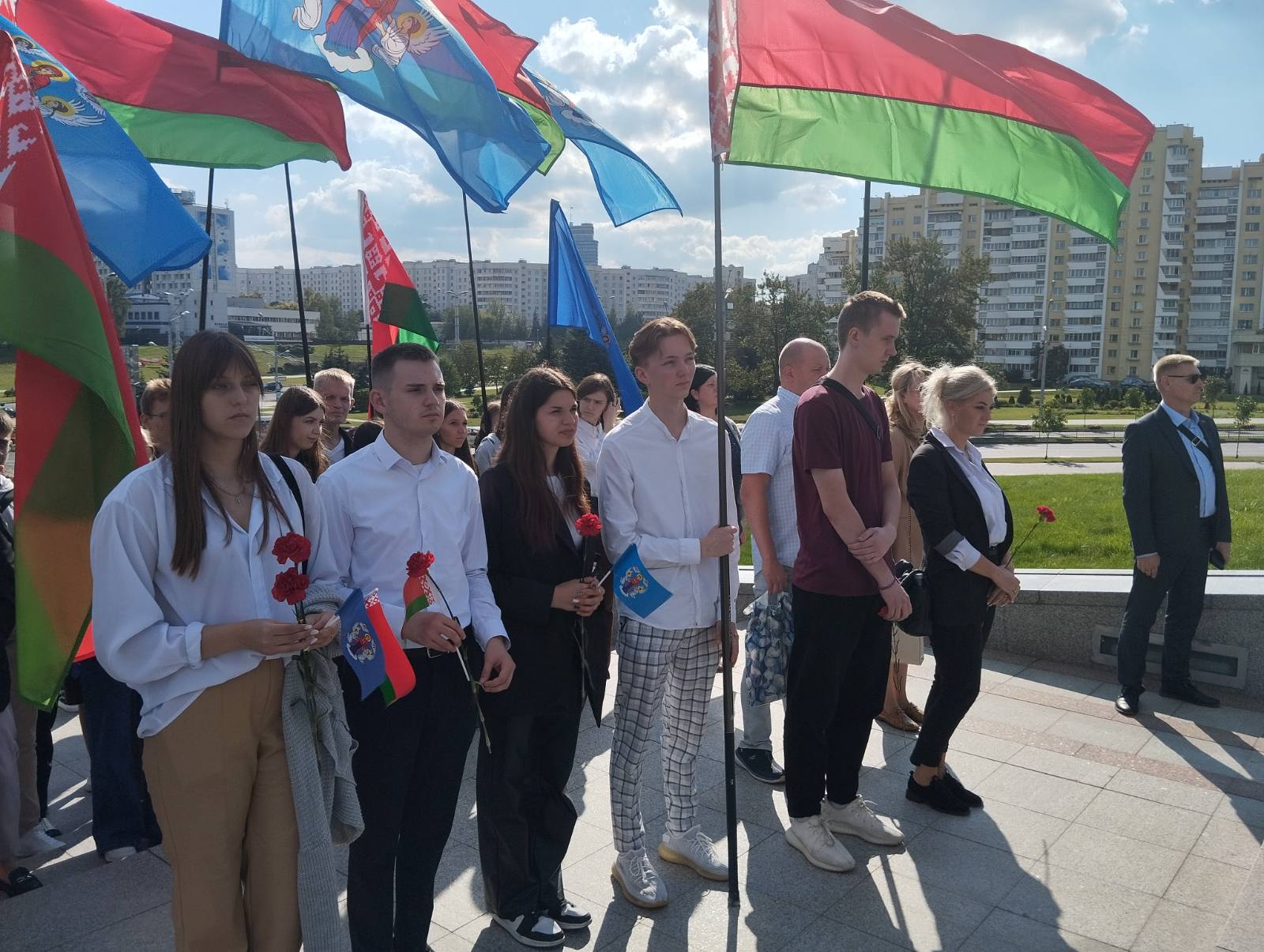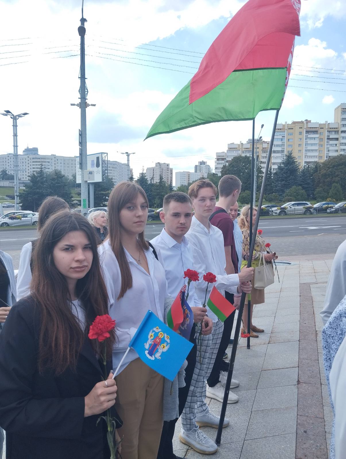 21 сентября 2023 года учащиеся учреждения образования «Минский государственный финансово-экономический колледж» приняли участие в торжественном возложении цветов к стеле «Минск-город-герой» в рамках закрытия республиканского проекта «Автопоезд # Беларусь. Молодежь. Созидание».