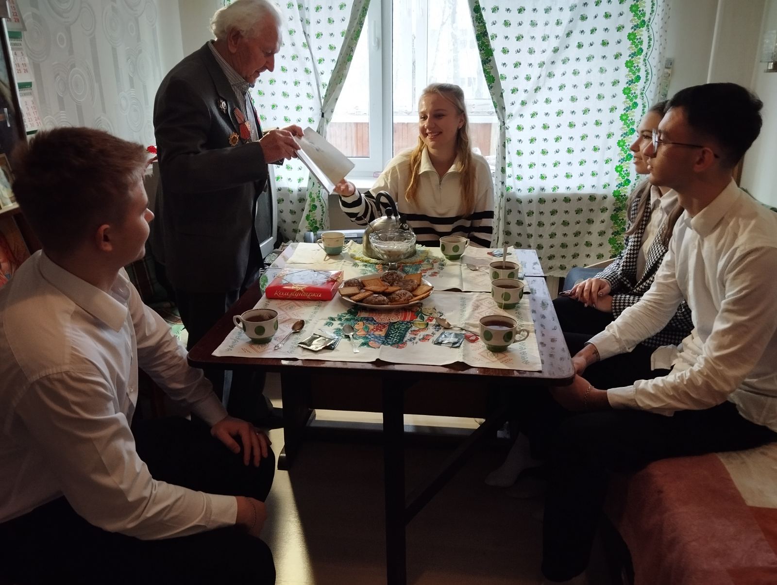10 ноября 2023 года учащиеся учреждения образования «Минский государственный финансово-экономический колледж» по месту жительства посетили и поздравили с Днём рождения ветерана Великой Отечественной войны Ерёмина Леонида Александровича. Имениннику вручили цветы и подарки, пожелали крепкого здоровья, долгих лет жизни и благополучия. В ответ Леонид Александрович поблагодарил за столь душевное поздравление, внимание и заботу.