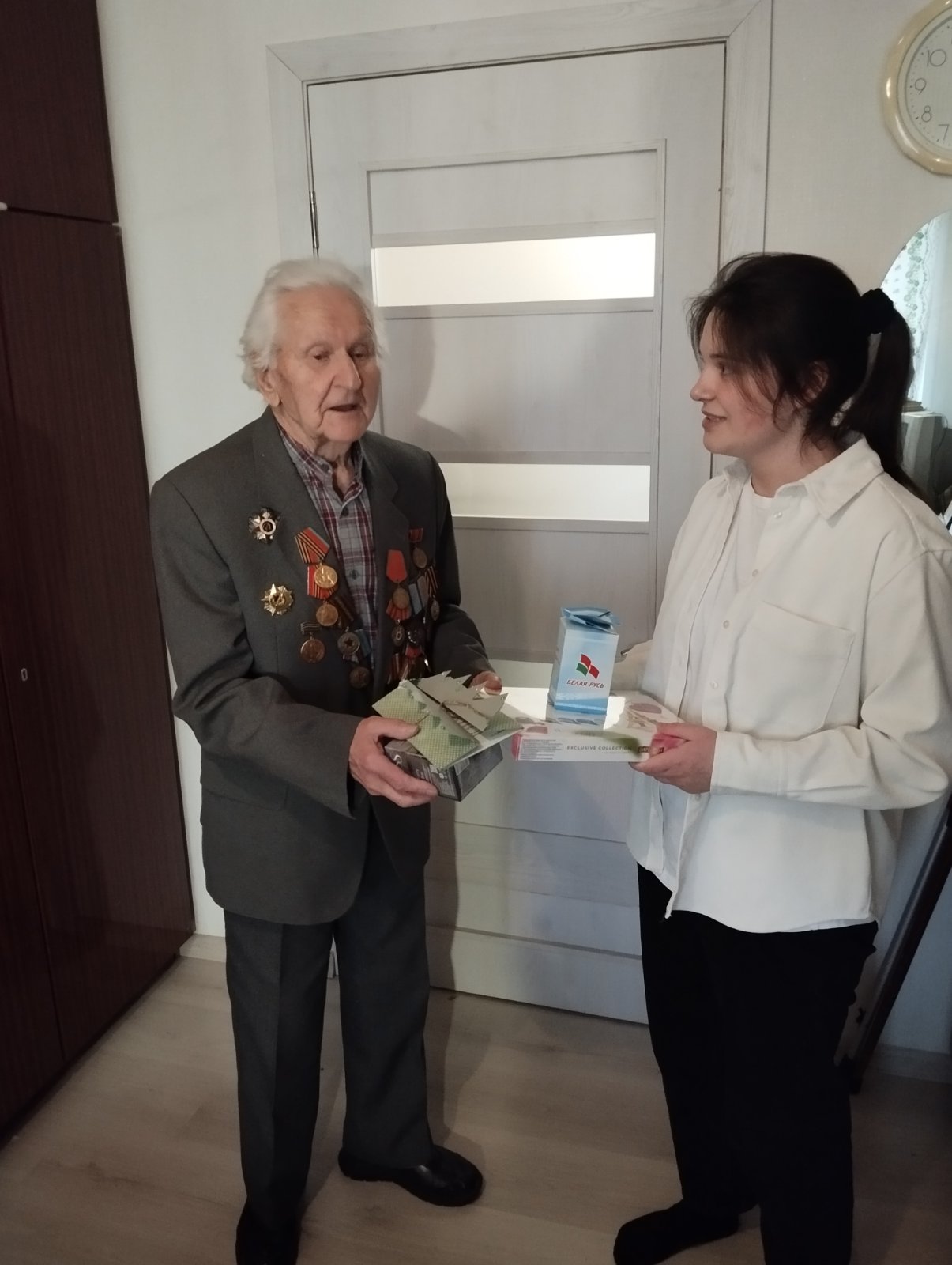 28 декабря 2023 года учащиеся учреждения образования «Минский государственный финансово-экономический колледж» по месту жительства посетили и поздравили с наступающим Новым годом ветерана Великой Отечественной войны Ерёмина Леонида Александровича.