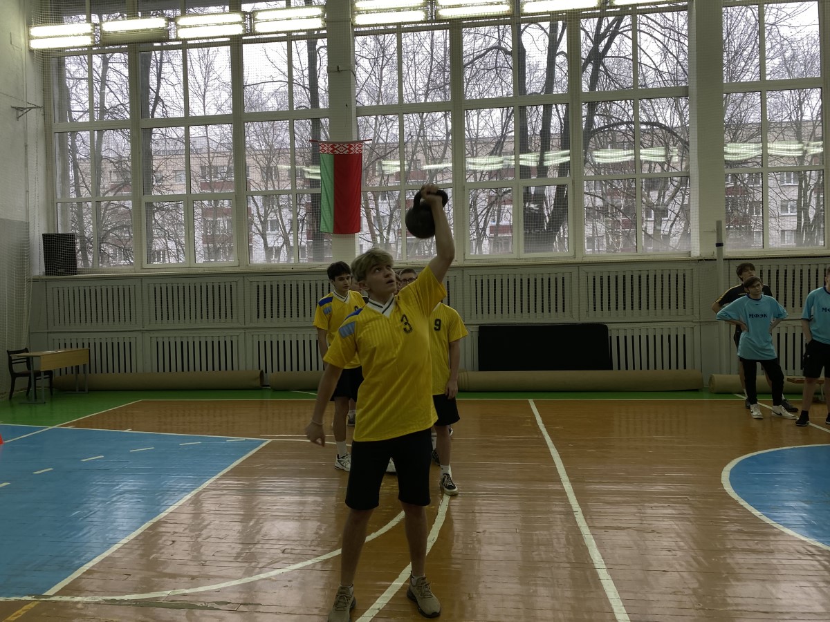 Две команды юношей соревновались в отжиманиях, жиме гири 16 кг., надевании противогаза на время, прохождении полосы препятствий и перетягивании каната. По окончании праздника все участники были награждены сладкими призами.