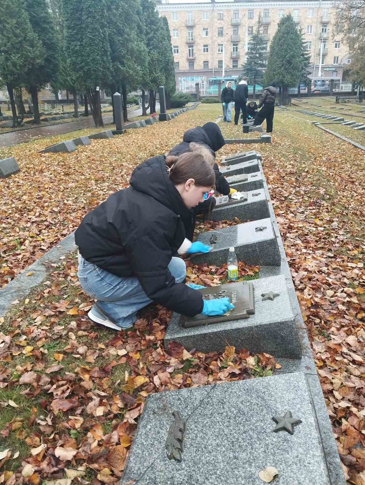 24 октября 2025 года в рамках республиканского субботника учащиеся учреждения образования «Минский государственный финансово-экономический колледж» приняли участие в мероприятии по наведению порядка и поддержанию в надлежащем состоянии воинских захоронений на территории кладбища «Военное».
