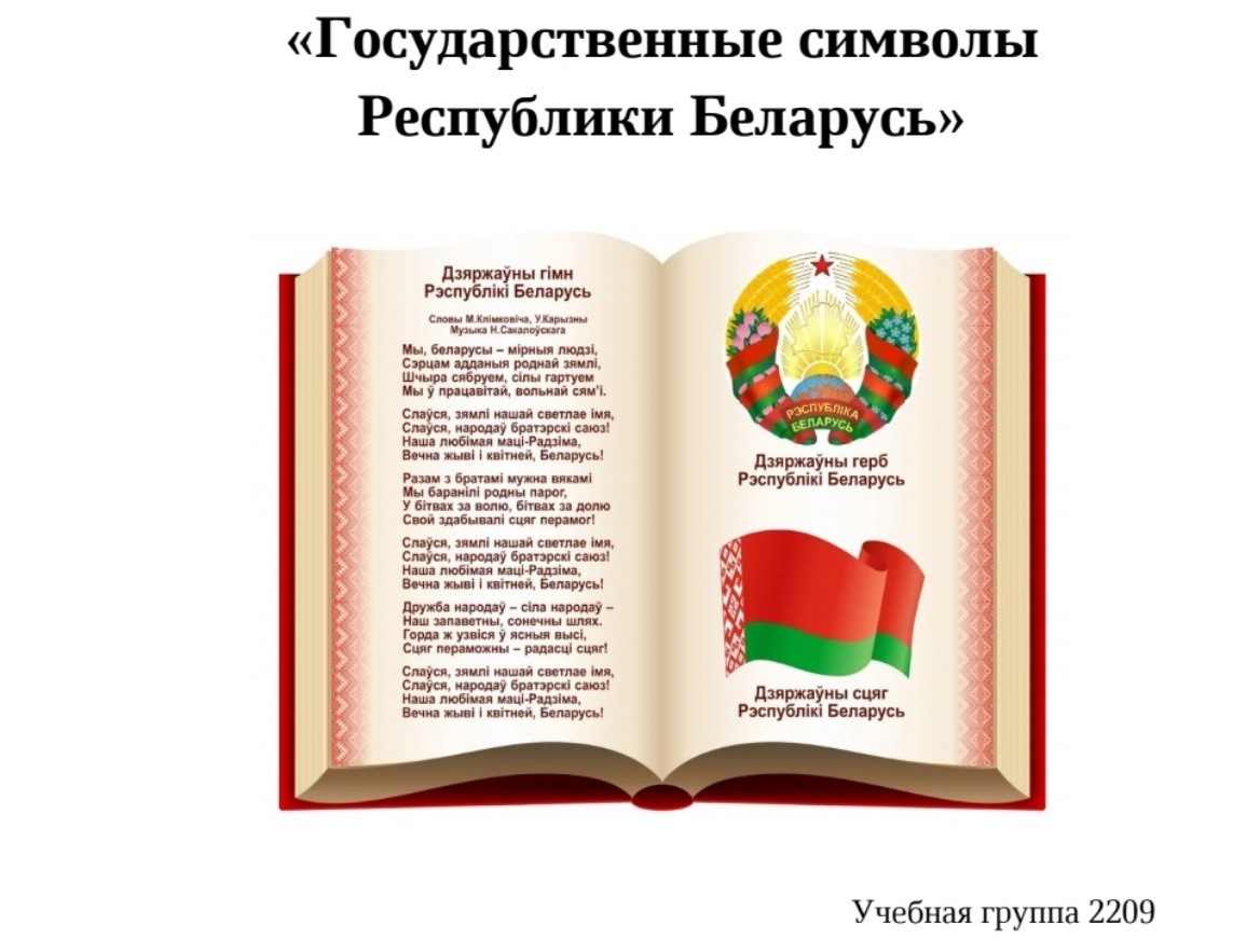 16 мая 2024 года в учебной группе 2209 специальности «Бухгалтерский учет, анализ и контроль» прошел открытый кураторский час «Государственные символы Республики Беларусь».