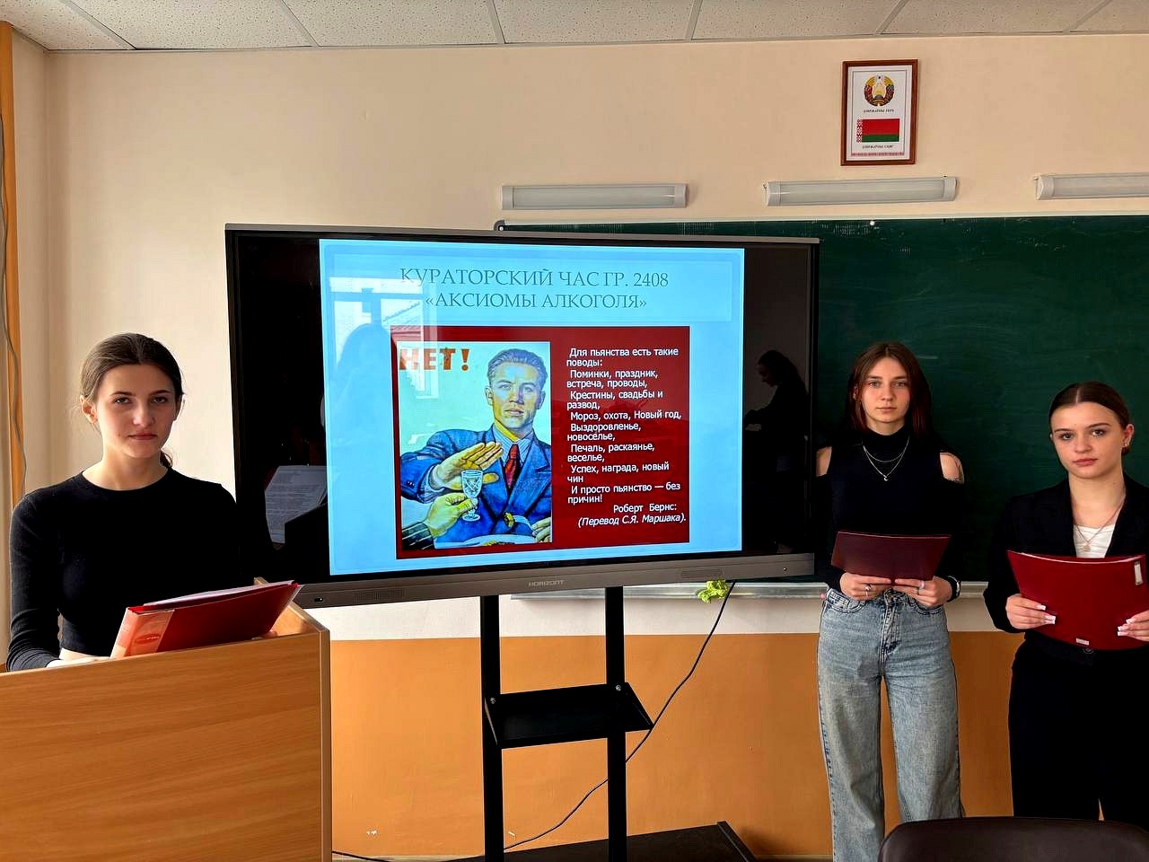 14 апреля 2025 года в учебной группе 2408 состоялся открытый кураторский час, посвященный вредному влиянию алкоголя на моральное и физическое состояние человека.