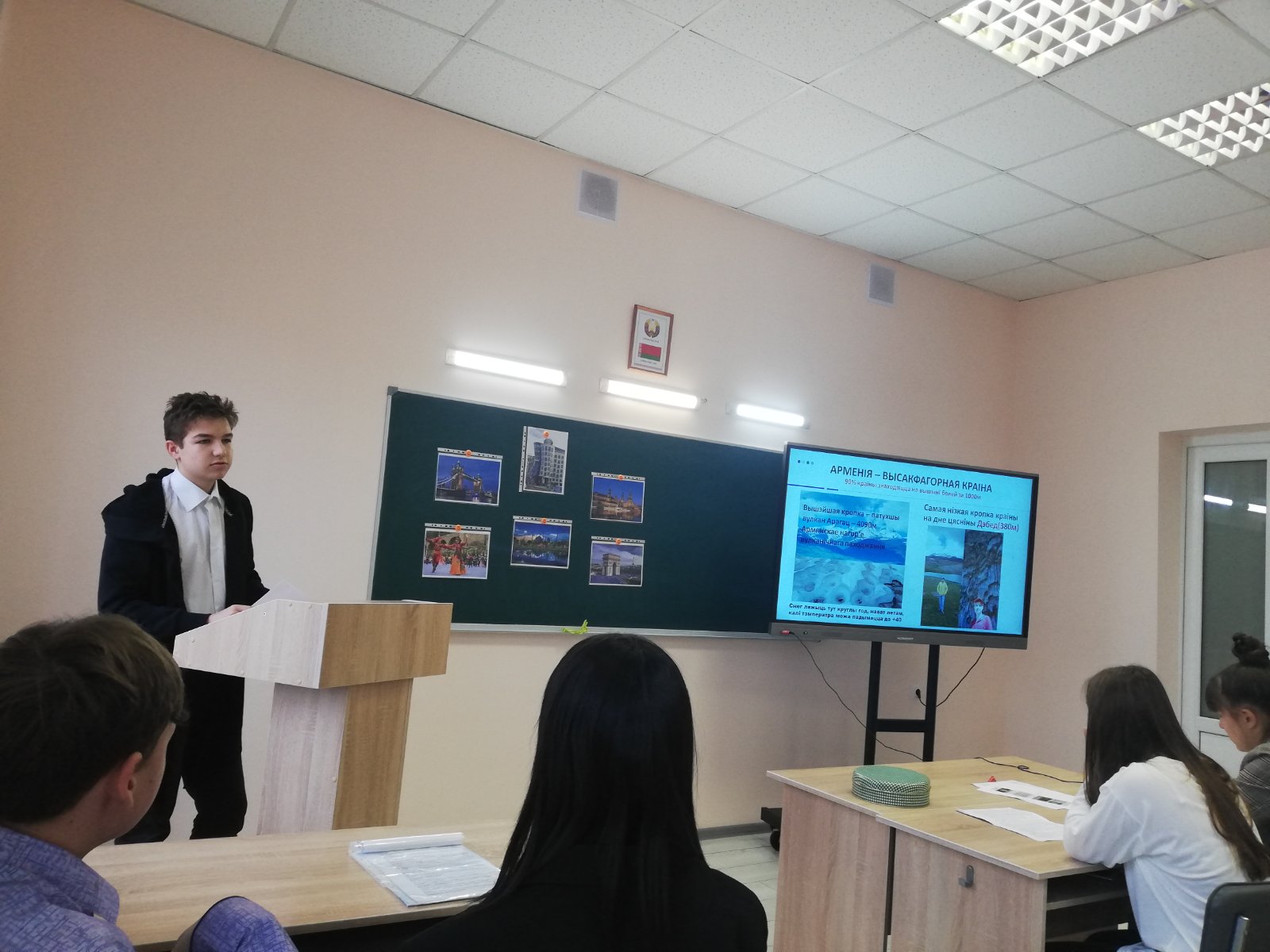 Учащиеся совершили заочное путешествие по самым красивым и популярным среди молодёжи местам города Минска, поделились своими впечатлениями о городах Беларуси, которые они посещали, о странах, в которых они побывали, познакомились с историей, культурой, архитектурой, природой и достопримечательностями Армении, Азербайджана, Грузии, Украины, а также Турции, Египта, Германии и Чехии, активно участвовали в викторине.