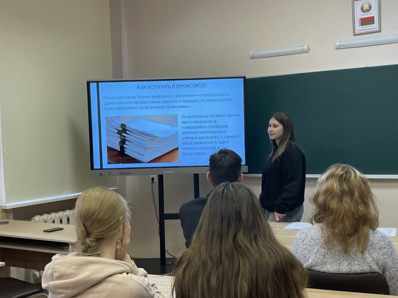 На встрече присутствовала Лин Е.В., председатель первичной профсоюзной организации учащихся филиала БГЭУ «Минский финансово–экономический колледж», которая рассказала об основных направлениях деятельности профсоюза.