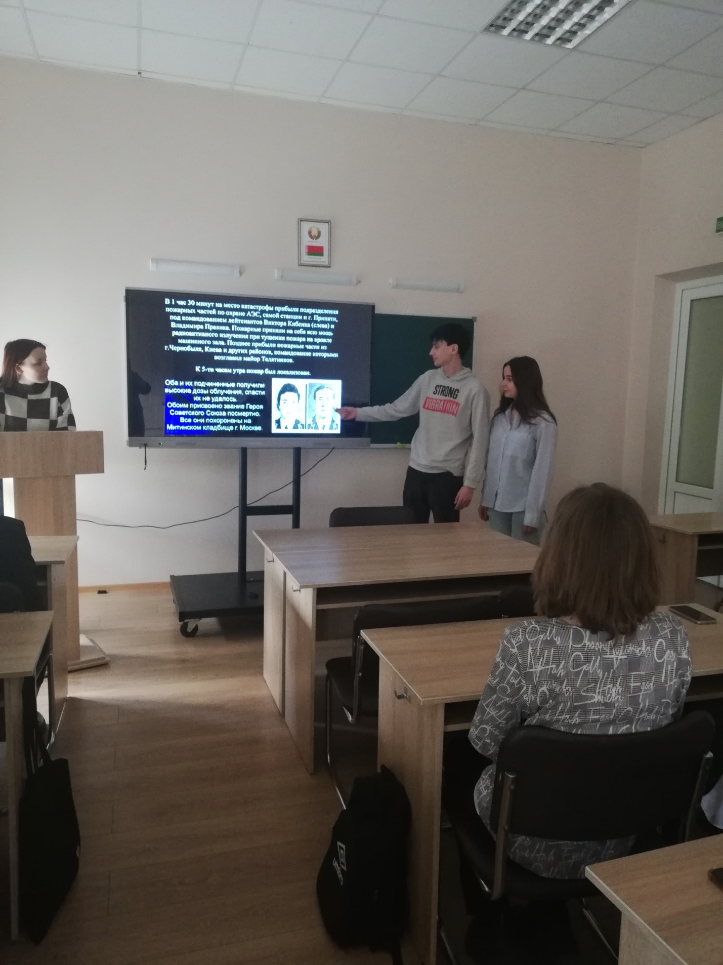 26 апреля 2023 года в группе 2201 проведён открытый кураторский час «Чернобыль: трагедия, подвиг, предупреждение», приуроченный ко дню аварии на Чернобыльской АЭС и посвященный павшим и живым участникам ликвидации катастрофы на Чернобыльской АЭС и других радиационных аварий, вдовам и матерям, семьям, потерявшим кормильца.