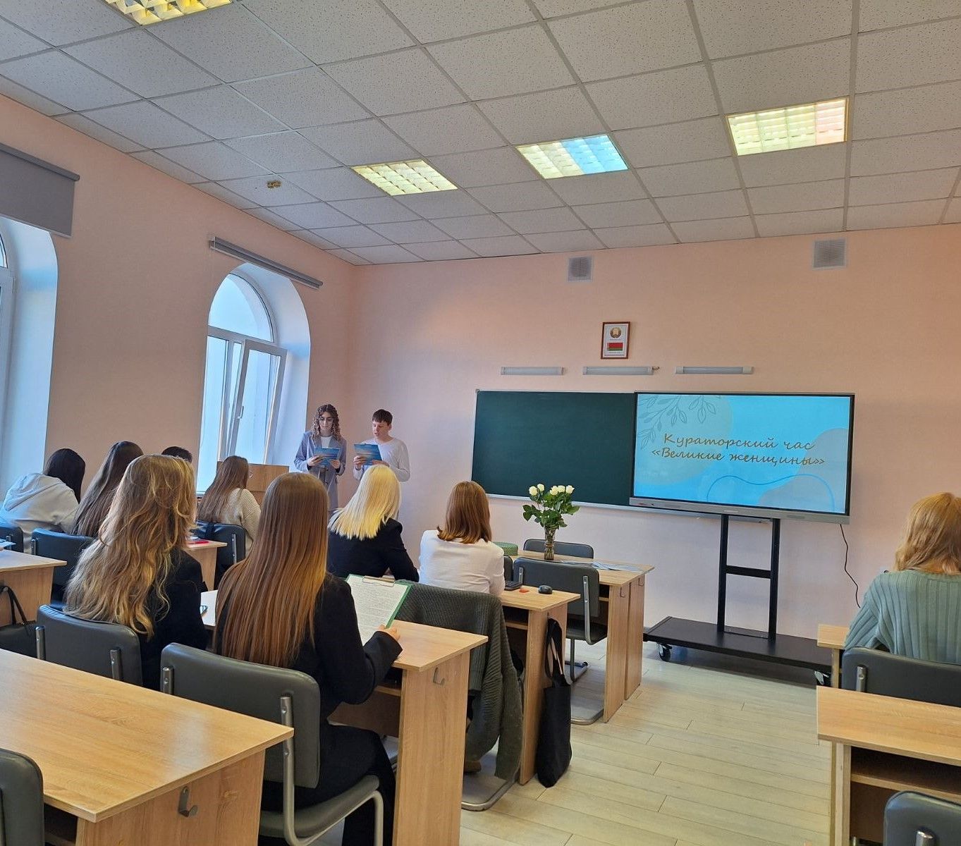 6 марта 2024 года в учебной группе 2210 прошёл открытый кураторский час на тему «Великие женщины», посвящённый Международному женскому дню 8 марта.