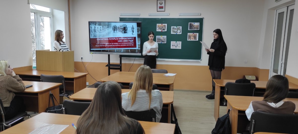 14 февраля 2024 года в учебной группе 2305 специальности «Финансовая деятельность» прошел открытый кураторский час на тему «Пока мы помним – мы живем!», приуроченный 15 февраля – Дню памяти воинов интернационалистов.
