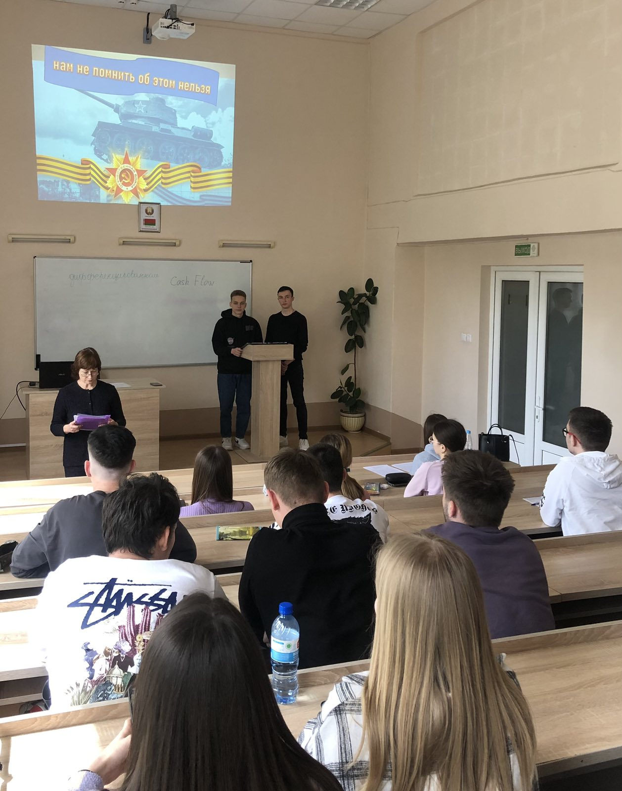 28 апреля 2023 года в учебных группах 2101,  2102,  куратор Киреева Е.А., прошел открытый кураторский час на тему «Нам не помнить об этом нельзя», посвященный Дню Победы. Это особый праздник для белорусов, дань памяти, глубокого уважения и благодарности воинам, труженикам тыла, партизанам и подпольщикам. Мы в вечном долгу перед ними и отдать этот долг мы можем  только памятью и уважением.