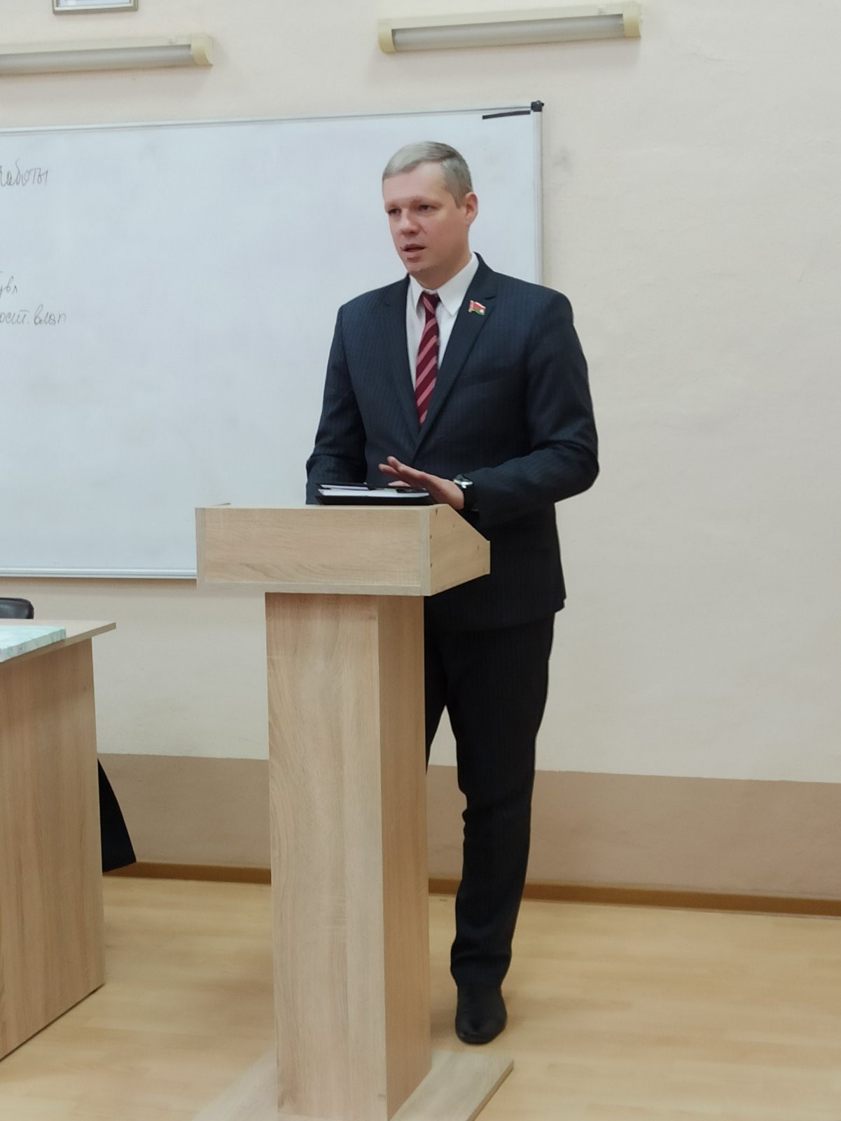 17 ноября 2022 года заместитель начальника РУВД Советского района г.Минска по идеологической работе и кадровому обеспечению Кессель Тимур Борисович встретился с учащимися филиала.