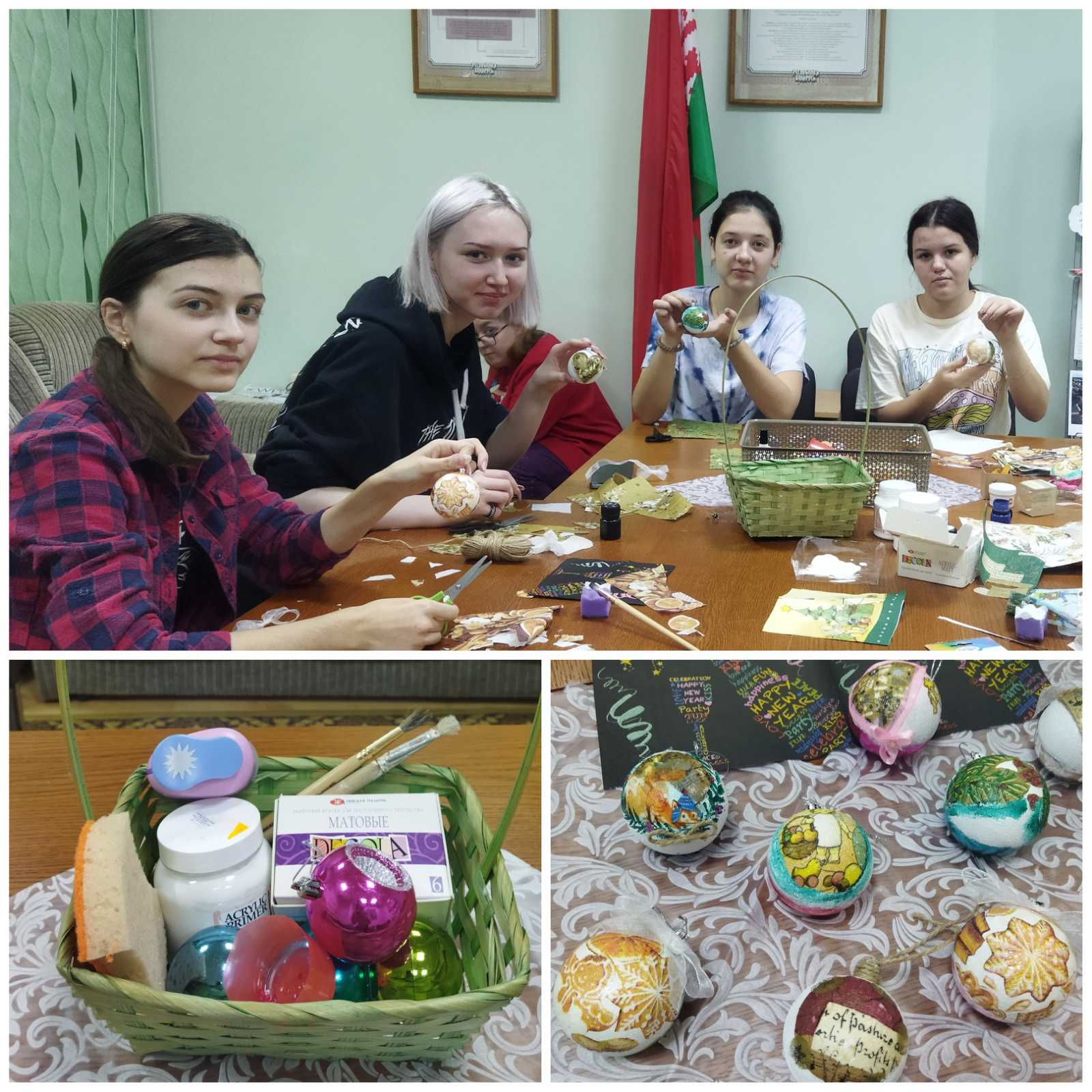 6 декабря  2022 года в общежитии филиала проведена творческая мастерская «Новогодний сувенир своими руками», на которой участницы изготовили сувенирные елочные шары с использованием техники декупаж.