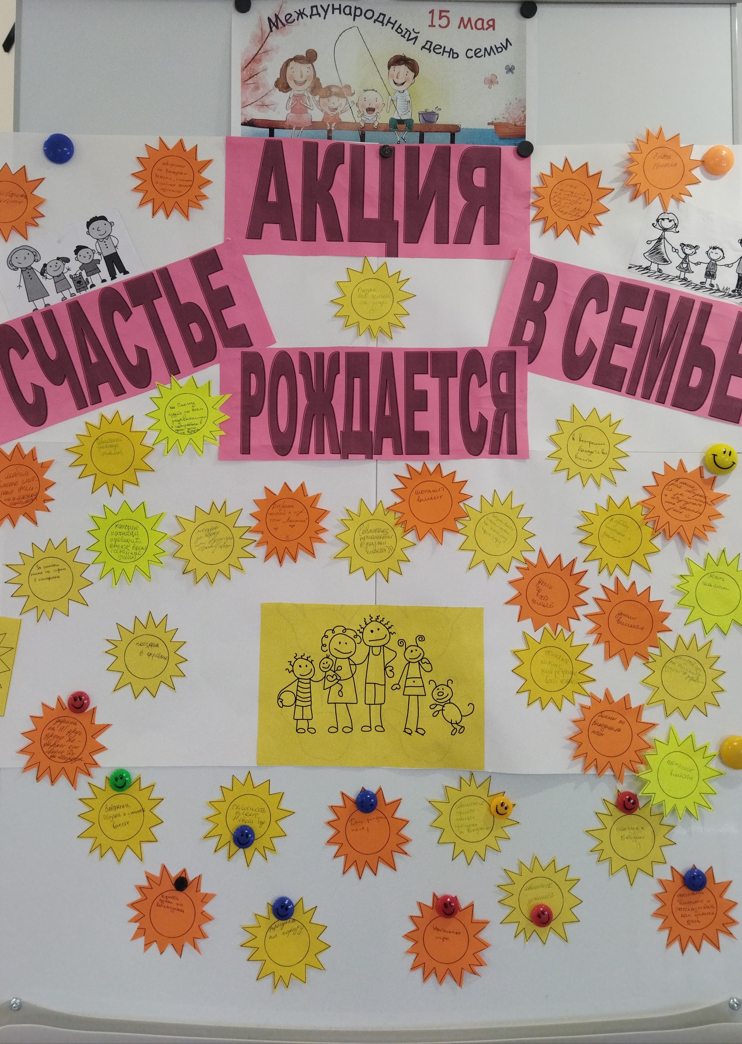15 мая 2023 года в филиале в рамках международного дня семьи прошла акция «Счастье рождается в семье»: был оформлен стенд «День семьи», проведена интерактивная площадка «Любимые традиции моей семьи», учащиеся 1 курса подготовили плакаты «10 правил счастливой семьи». Учащимся филиала предложено принять участие в флешмобе «Я люблю свою семью» по поздравлению родных с праздником.