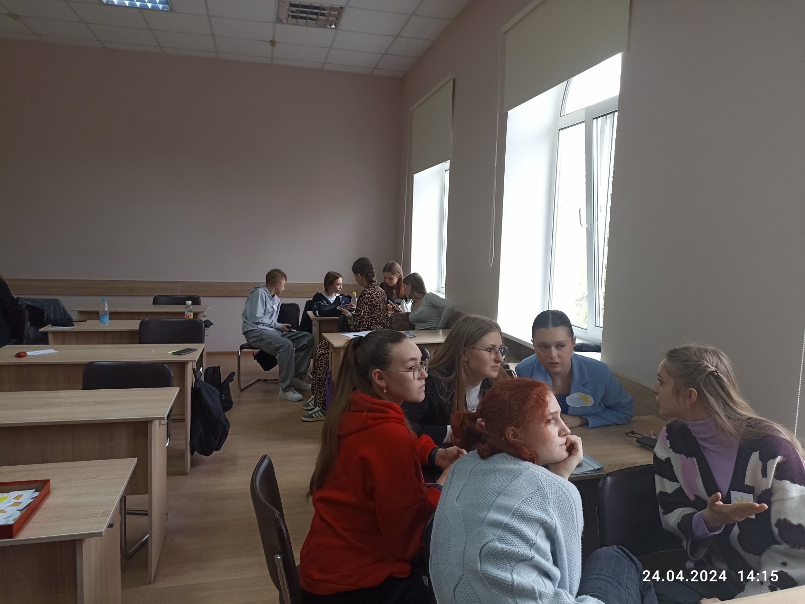 24 апреля 2024 года для групп 2 курса педагог- психолог Игнатня О.А провела групповое занятие «Личность и общество».