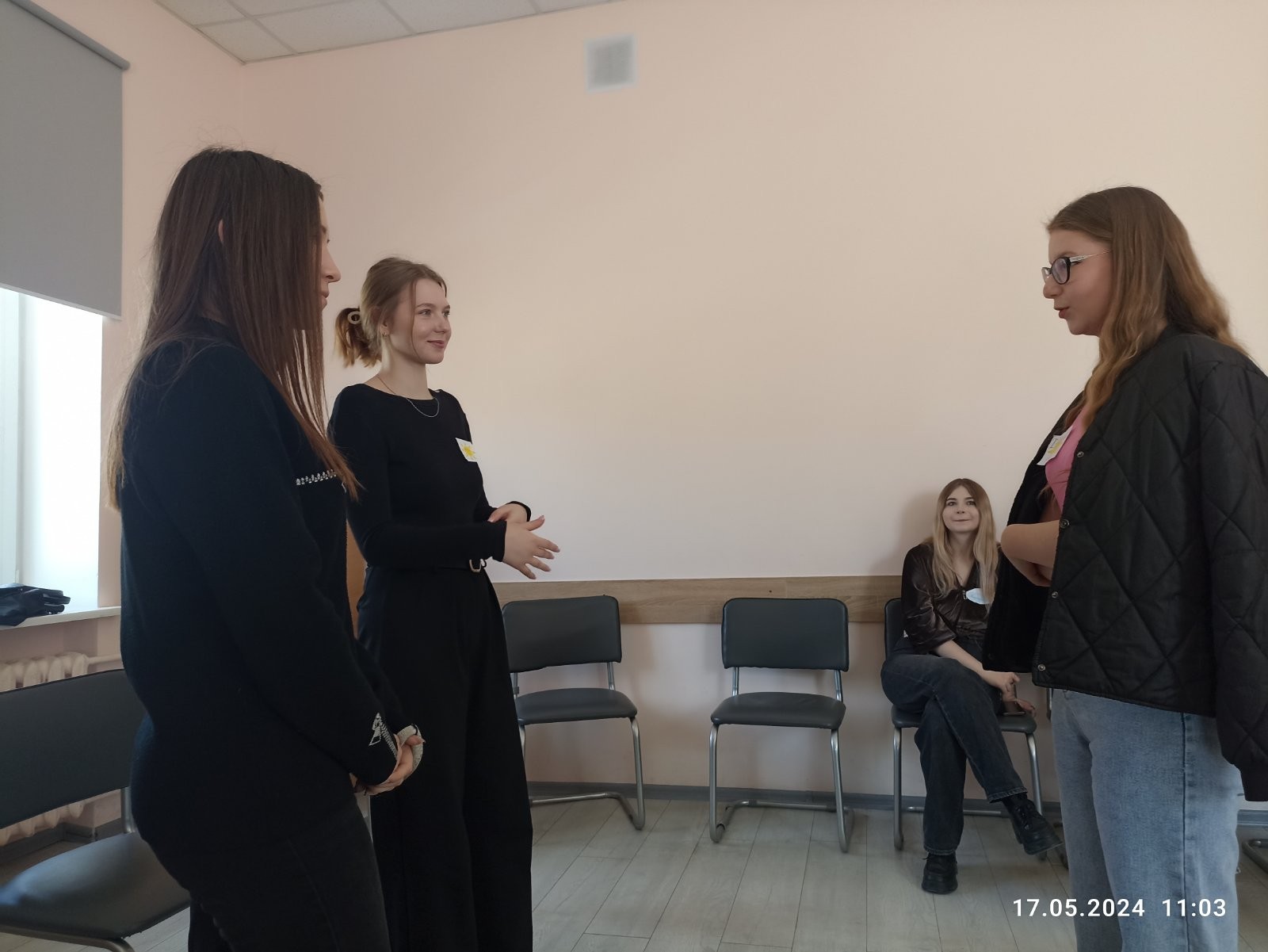 17 мая 2024 года педагог-психолог Игнатеня О.А. провела занятие с элементами тренинга «Выстраивание доверительных отношений в группе» с учащимися 2 курса учебной группы 2305.