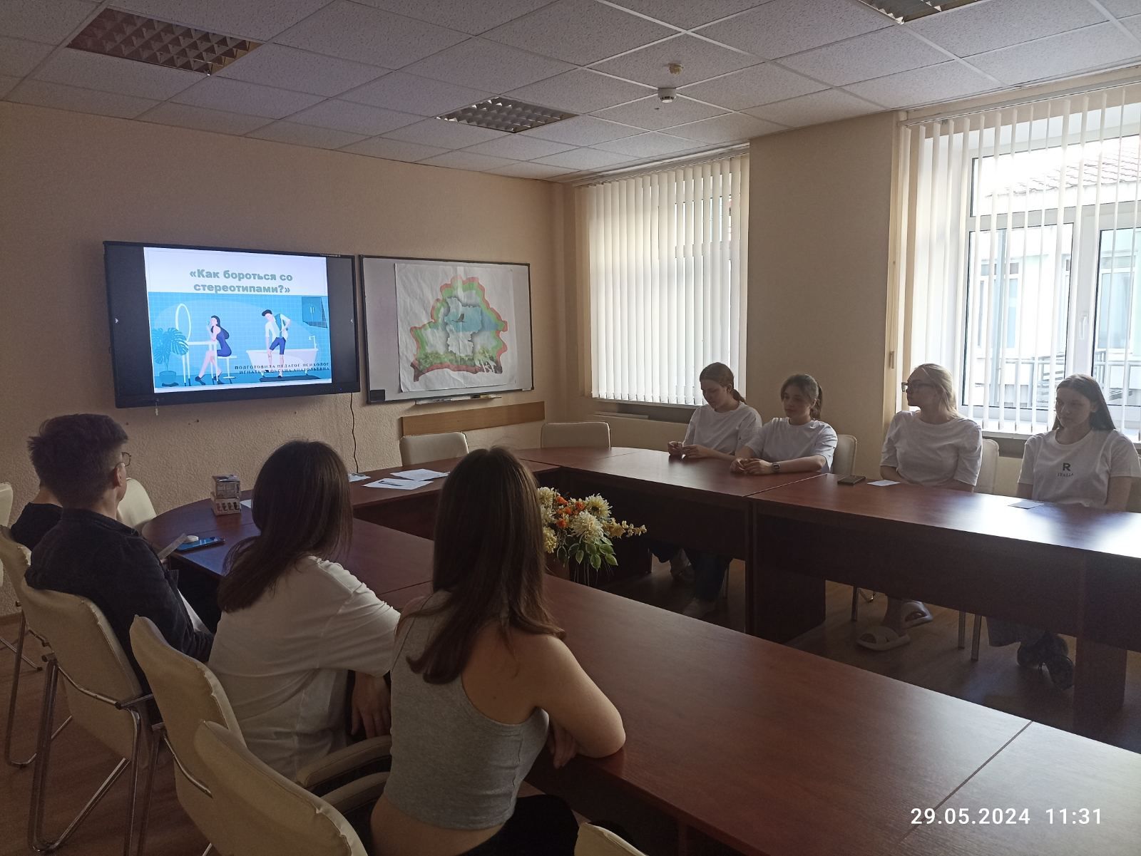 29 мая 2024 года педагог-психолог Игнатеня О.А. провела беседу  «Как бороться со стереотипами!?» с учащимися учебной группы 2305 II курса.